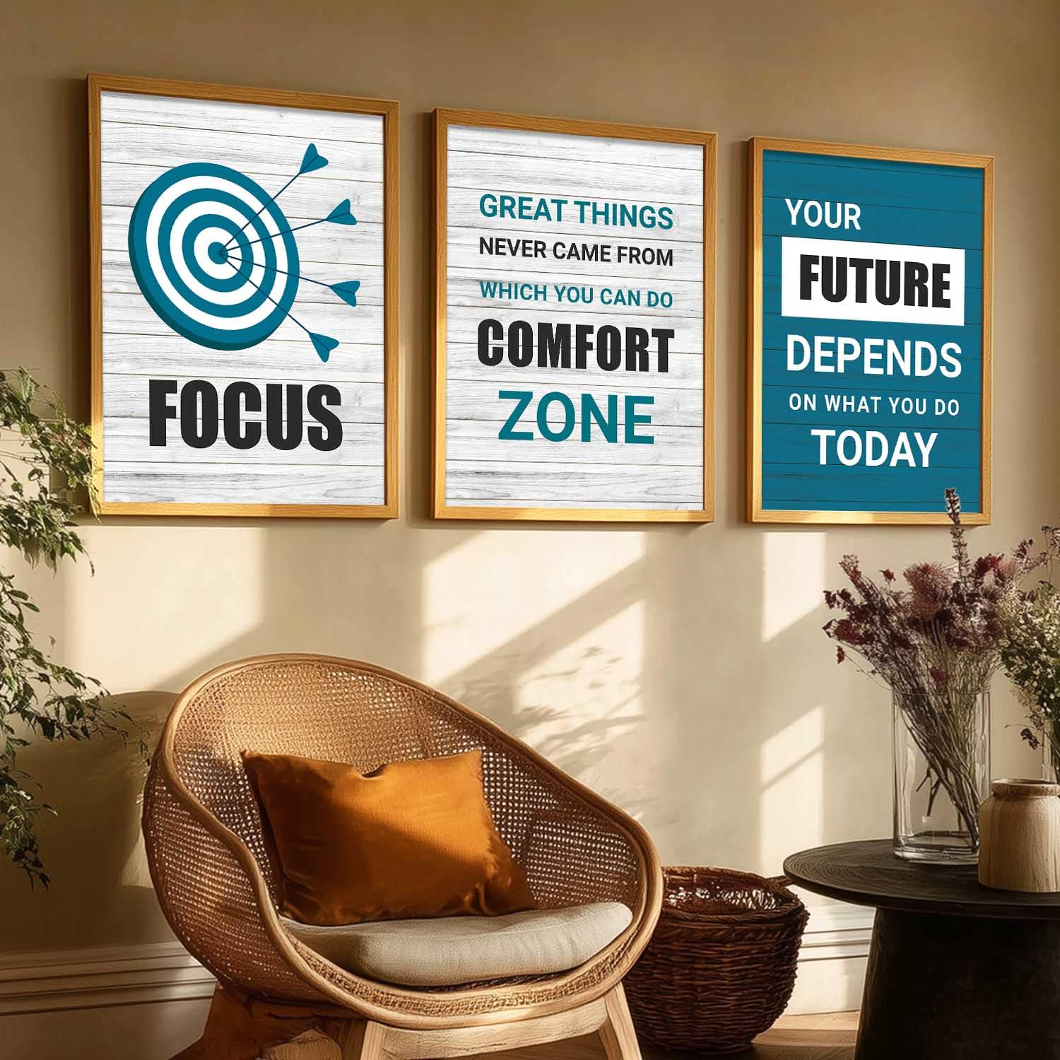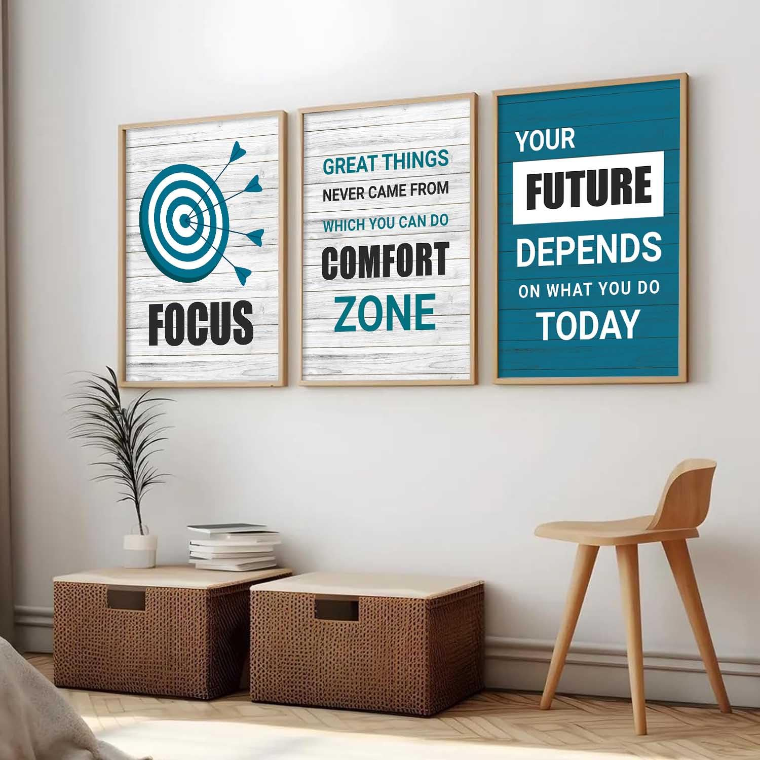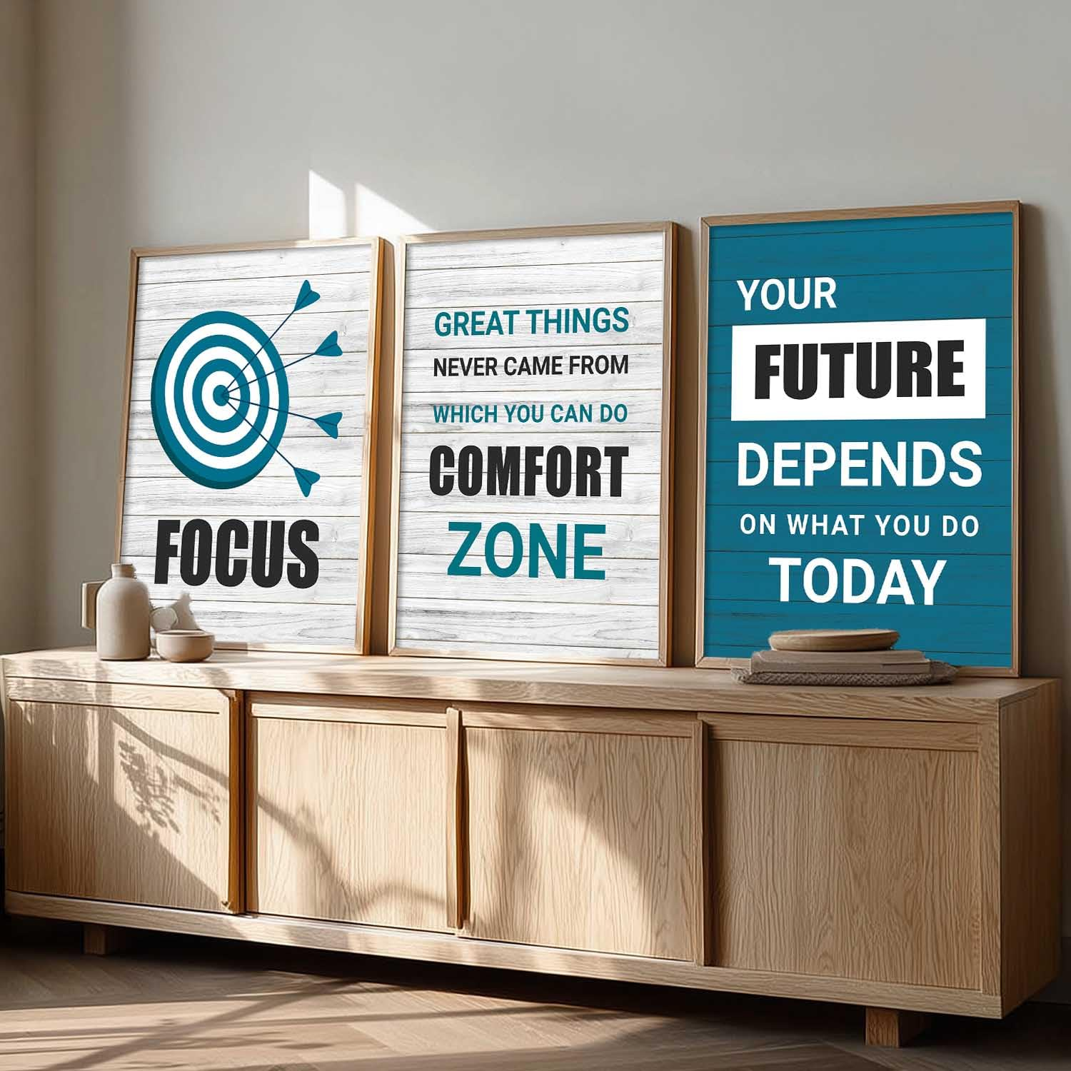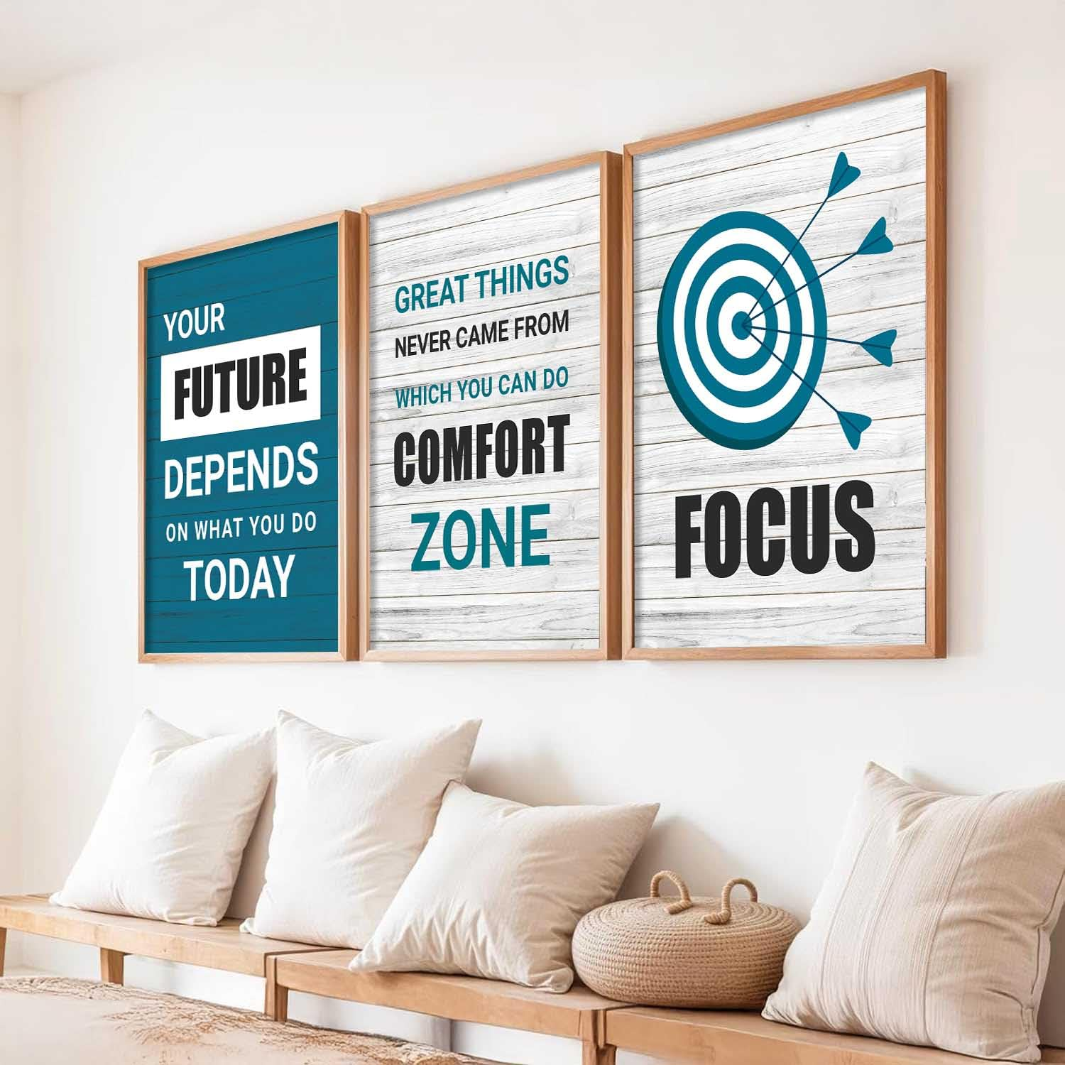 Inspire your space with this set of 3 motivational framed wall posters (13×17 inch). Featuring 300 DPI high-quality prints and durable 3/4 inch engineered wood frames, perfect for home and office décor.