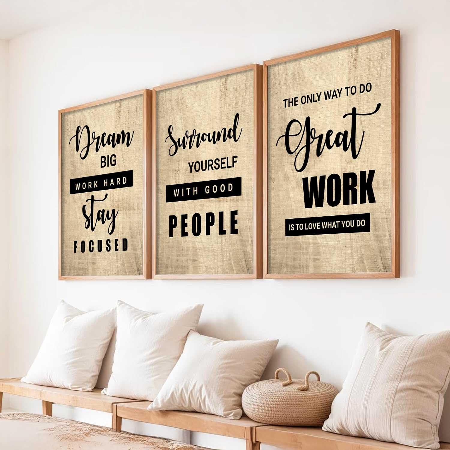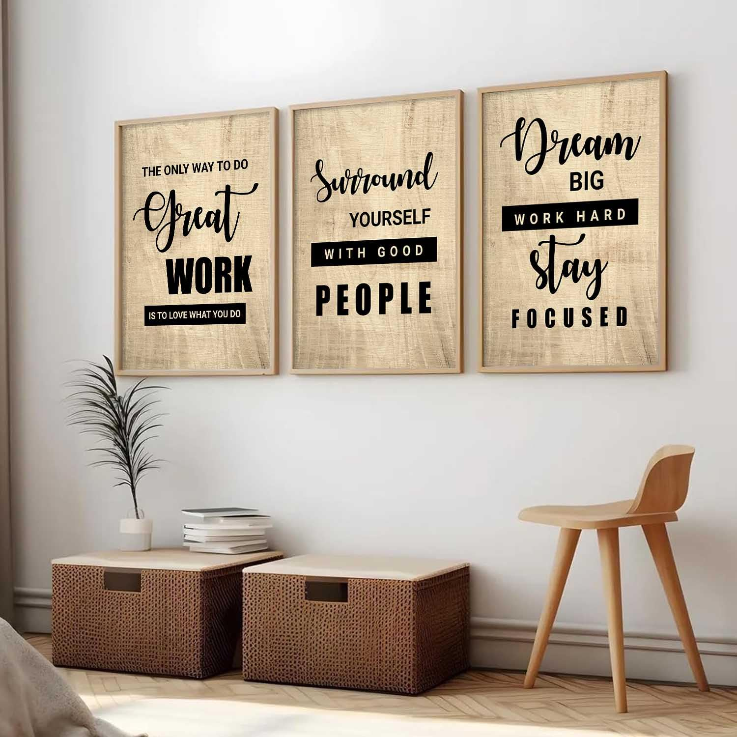 This motivational wall décor set not only enhances your interior aesthetics but also creates a productive and uplifting atmosphere wherever it is displayed.