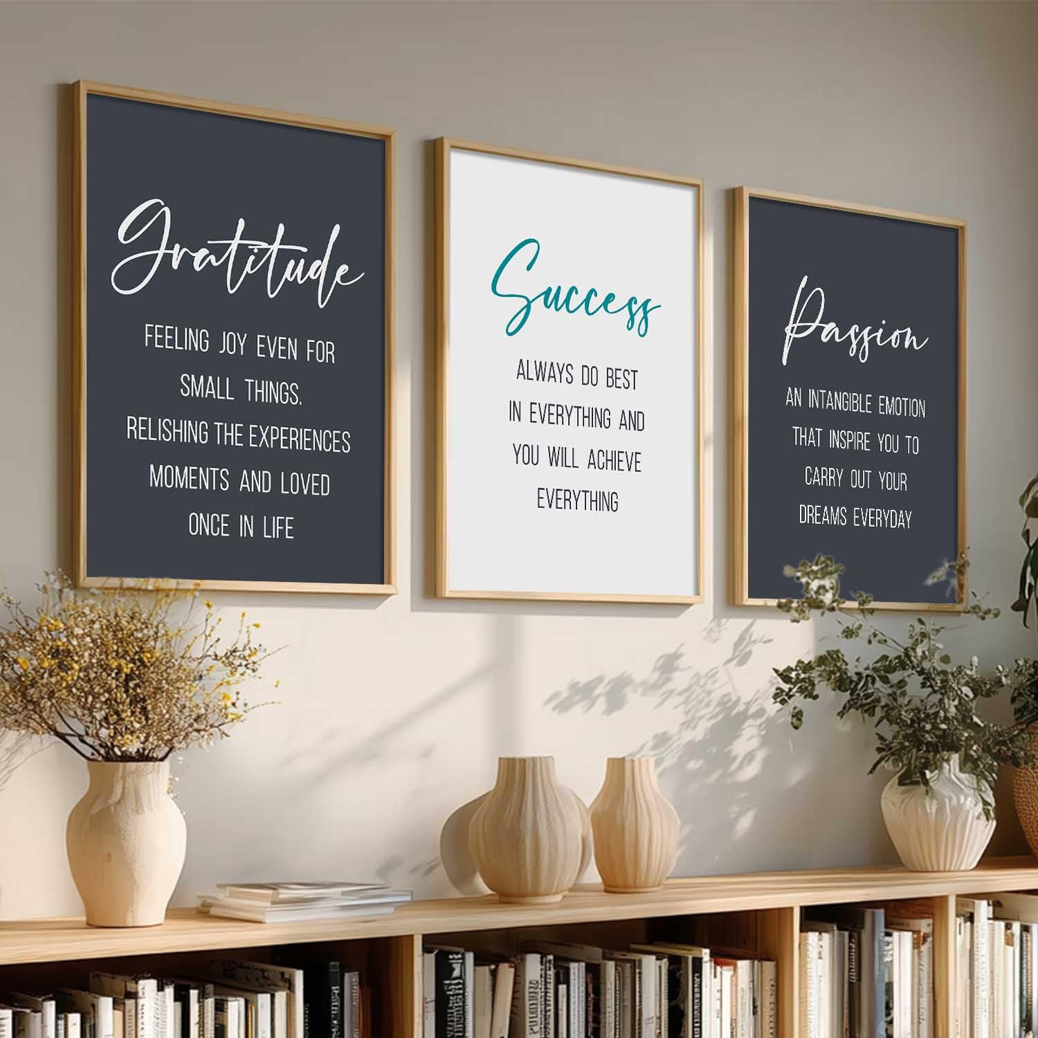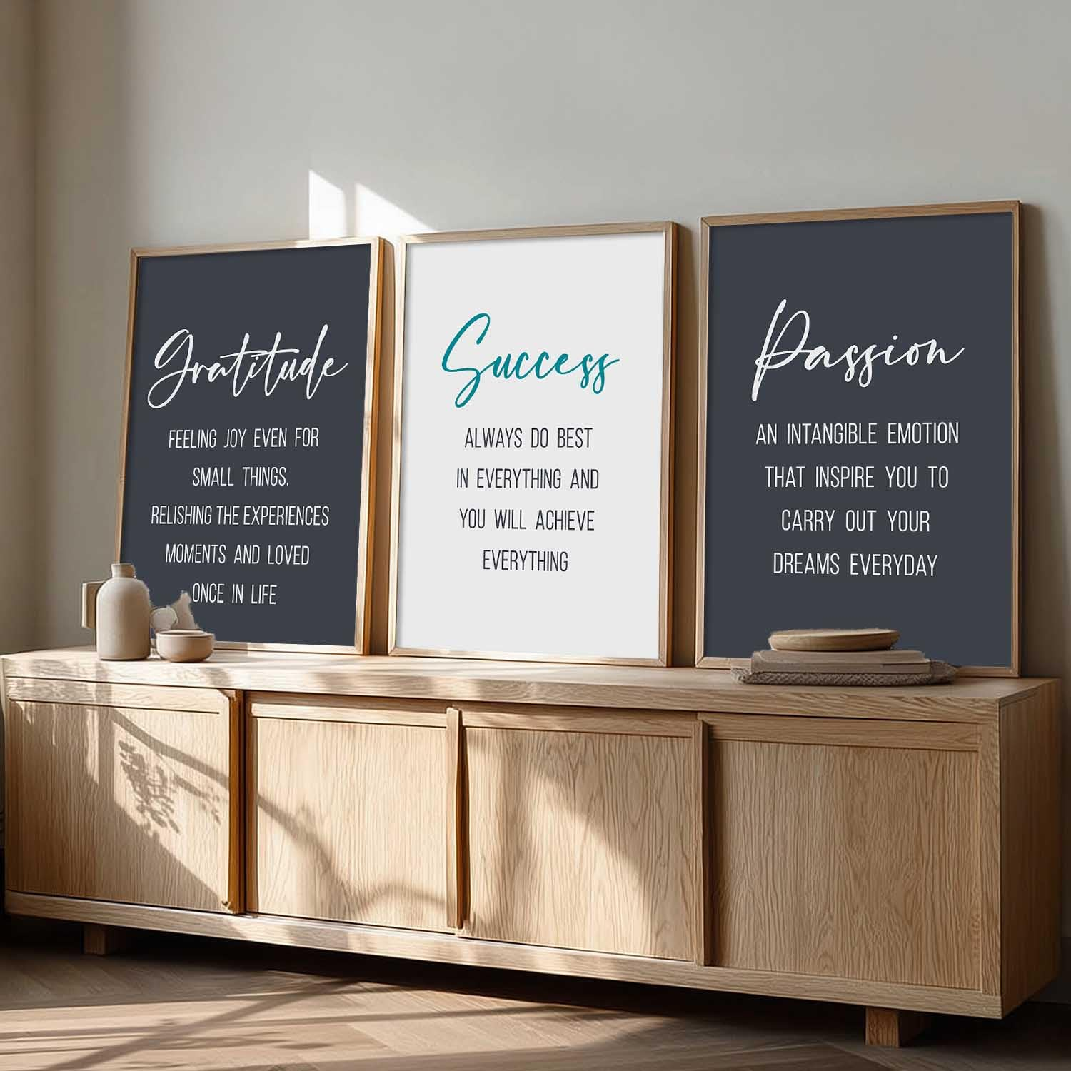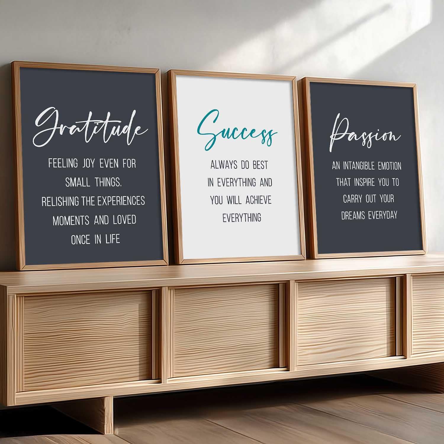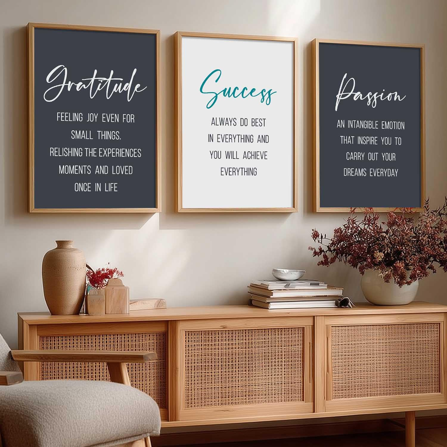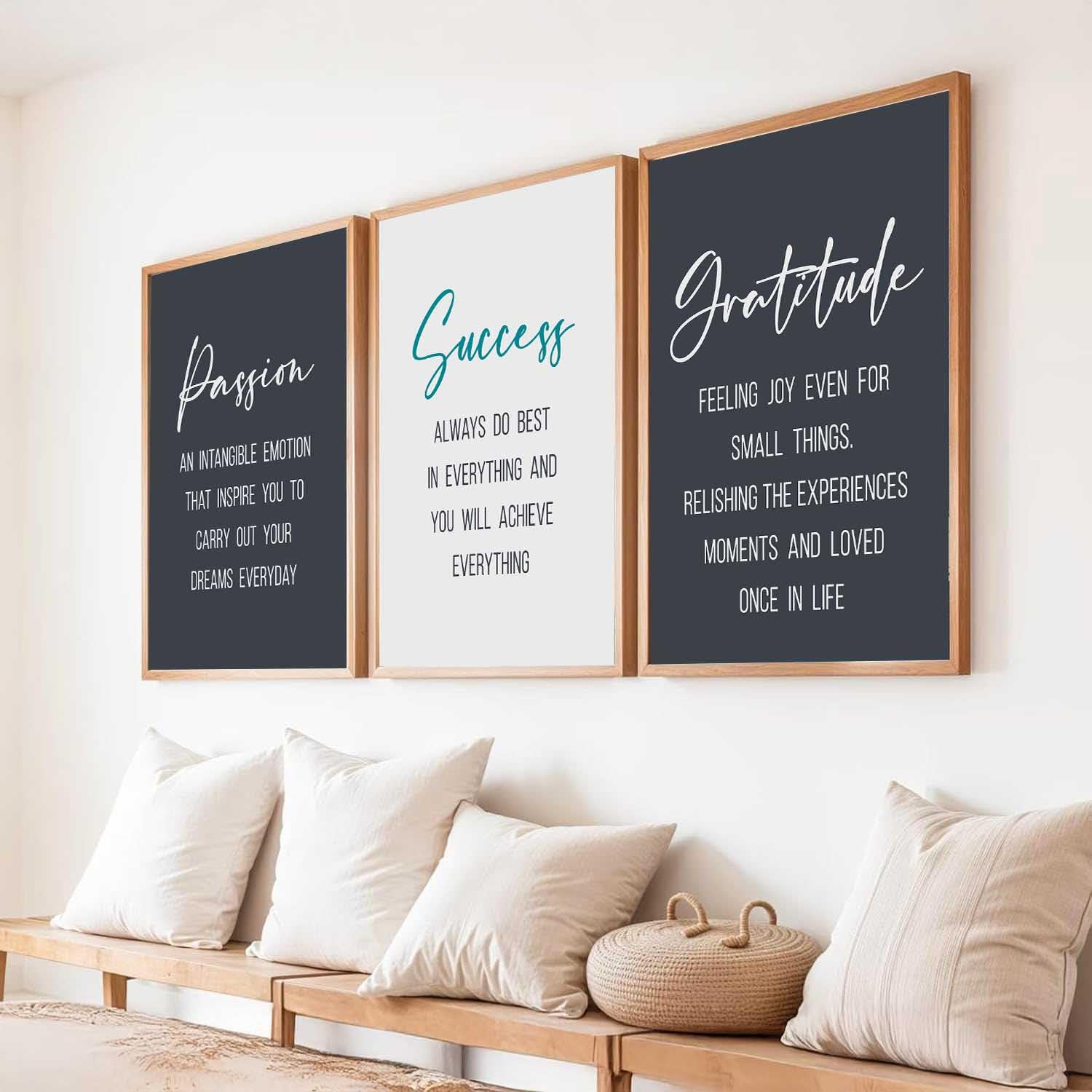 Whether you want to enhance your workspace productivity or add positive vibes to your home décor, this motivational wall art set is a stylish and meaningful choice.