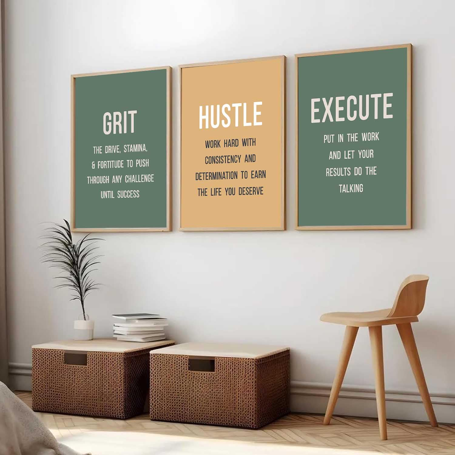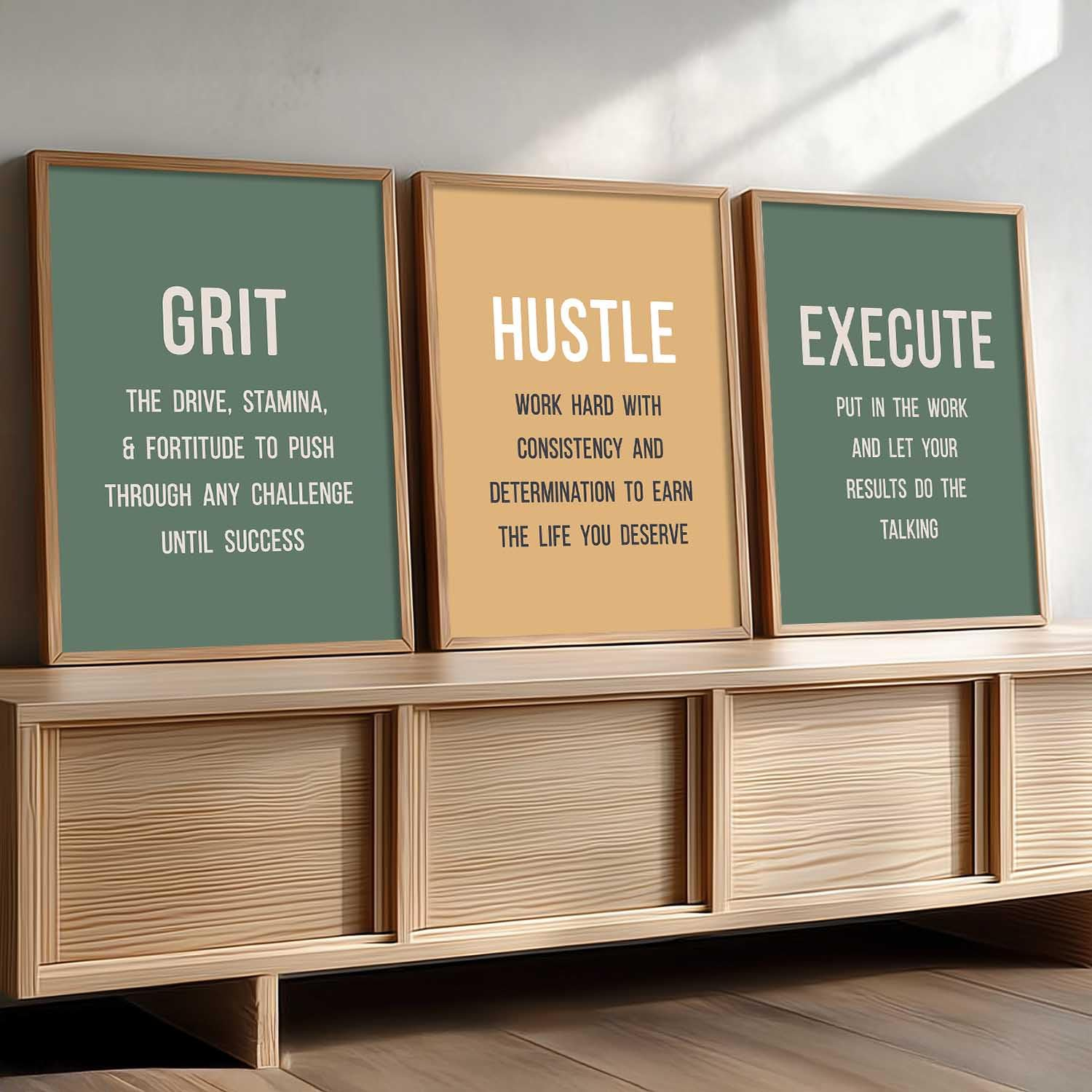 Enhance your living or workspace with this elegant set of 3 Motivational Quotes Wall Frames, designed to inspire positivity and productivity every day. Crafted with high-quality digital reprints on premium print material, each artwork delivers sharp details and vibrant colors for a clean, modern look.