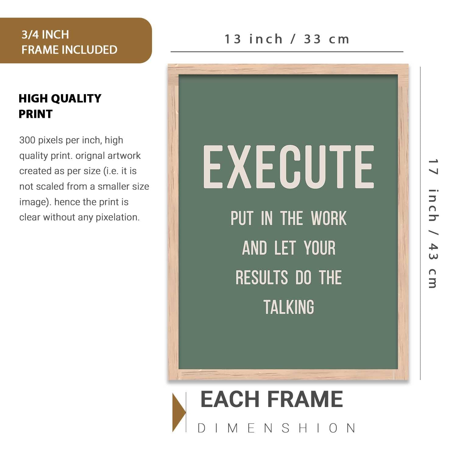 Each frame measures 13 x 17 inches and is made with durable engineered wood, ensuring long-lasting strength and a refined finish. The thoughtfully designed typography and motivational themes make this set perfect for offices, bedrooms, study rooms, living areas, and workspaces.