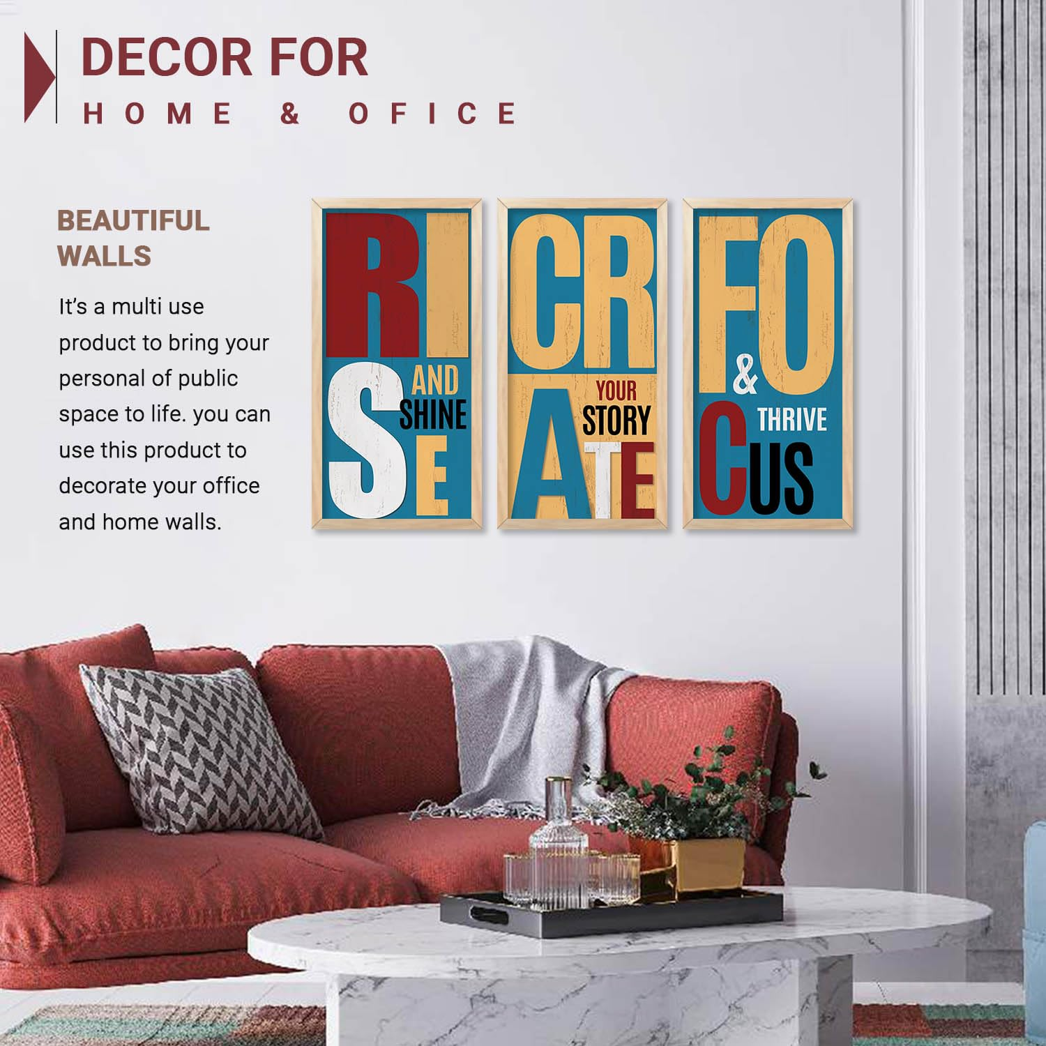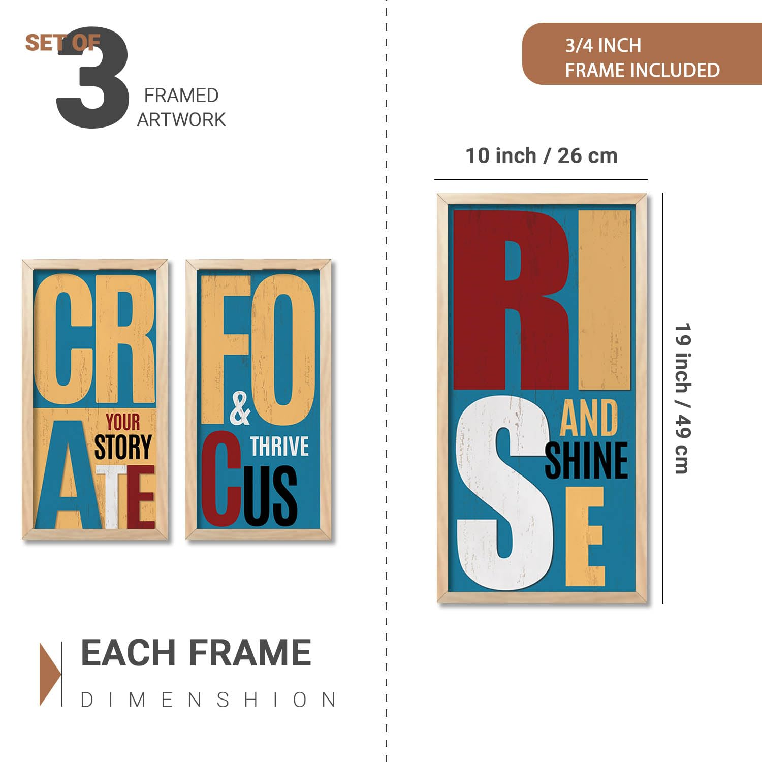 KRAYOG Motivational Quotes Wall Art with Frames | Inspirational Quote Wall Décor Paintings | Ready-to-Hang Posters for Office, Living Room & Bedroom | Set of 3 (10×19 Inch, Design F)