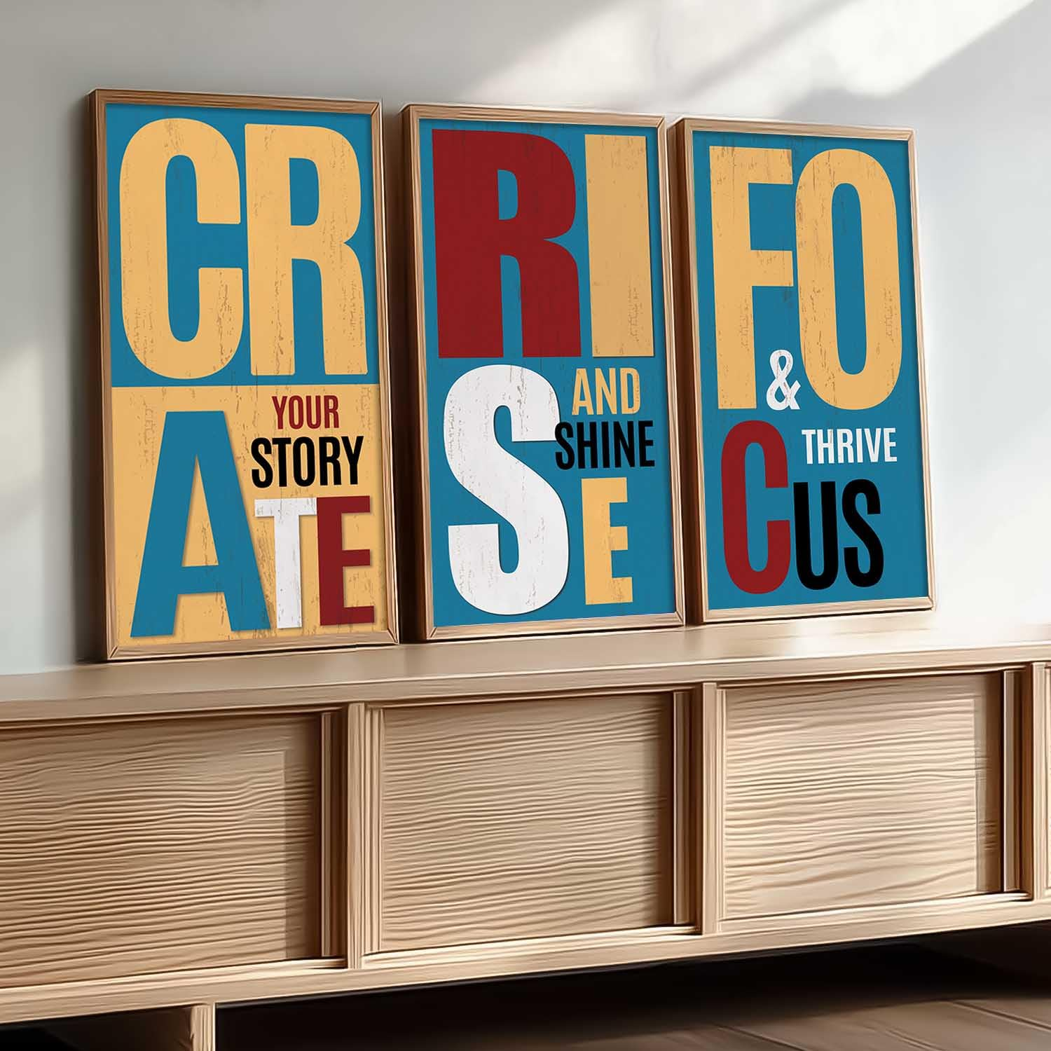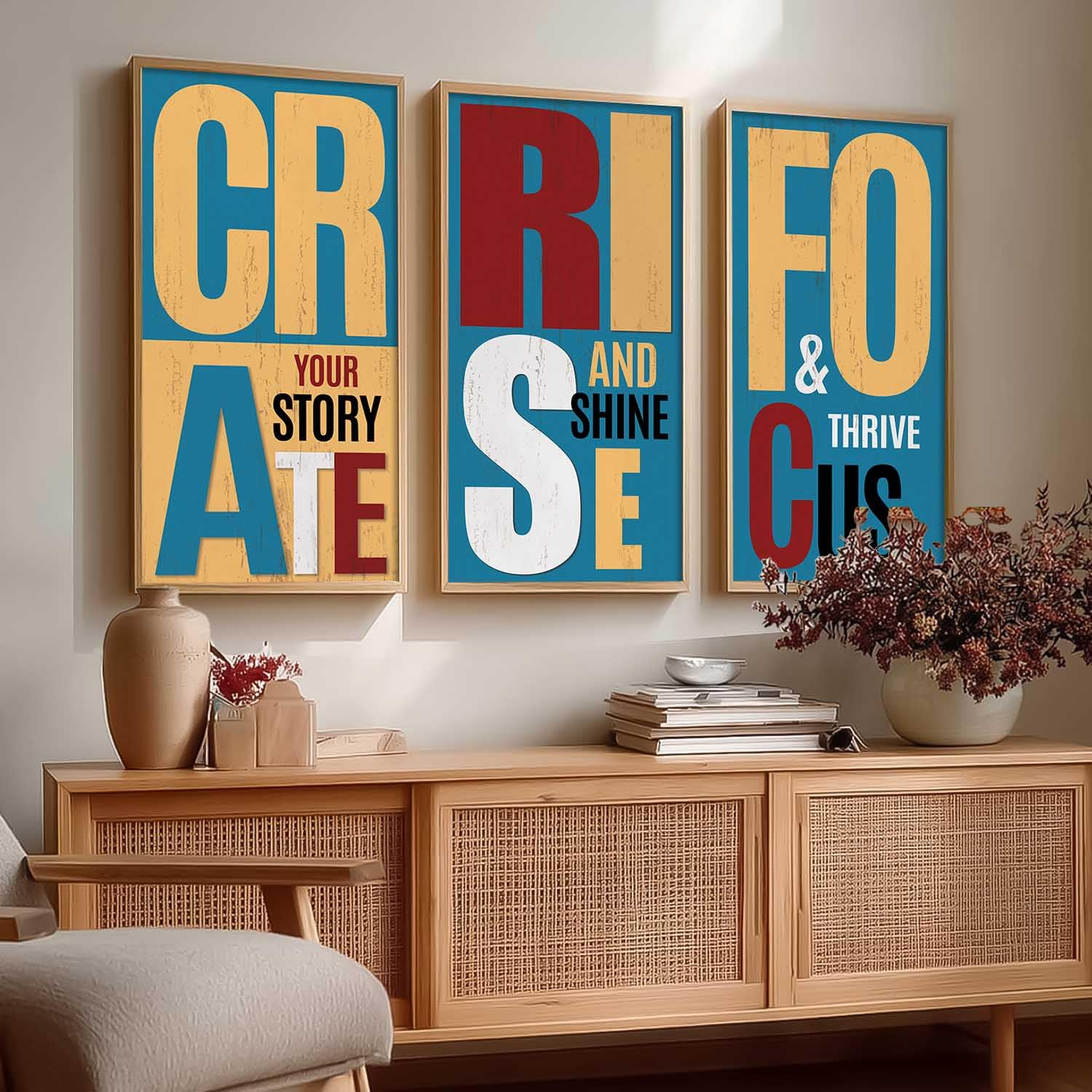 Add a touch of inspiration to your space with this Set of 3 Motivational Quotes Wall Frames (10×19 inch, Design F). Designed with uplifting typography and high-quality prints, these ready-to-hang framed posters are perfect for decorating your living room, bedroom, office, or study area while creating a positive and stylish atmosphere.