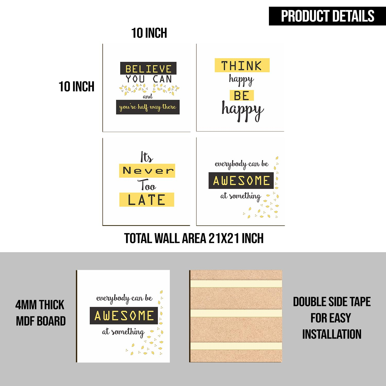Set of 4 framed motivational posters, 10″ x 10″ each, featuring inspiring designs (A) to brighten your home, office, or study space.