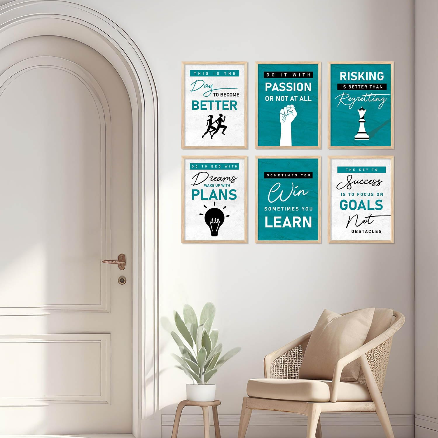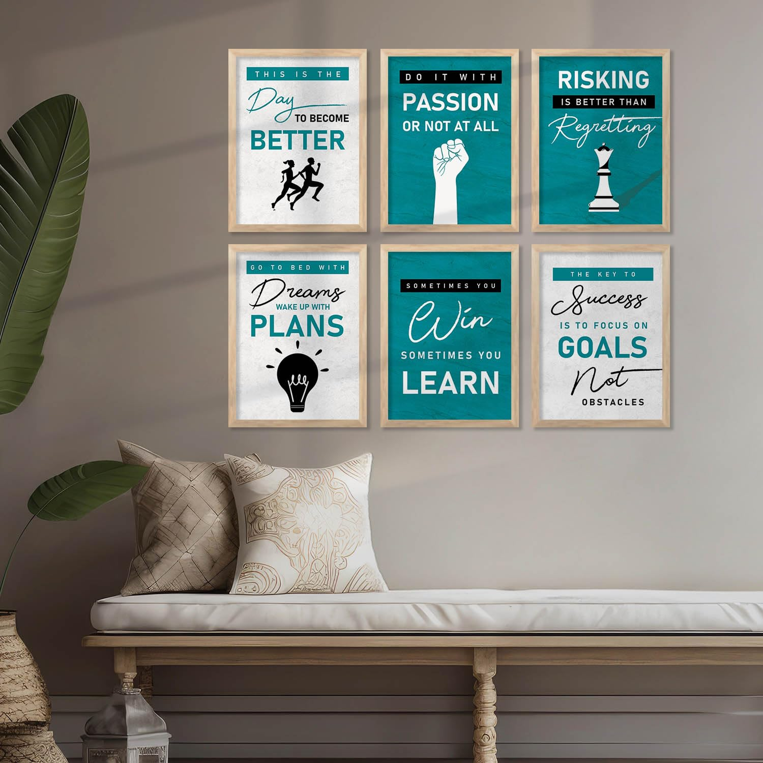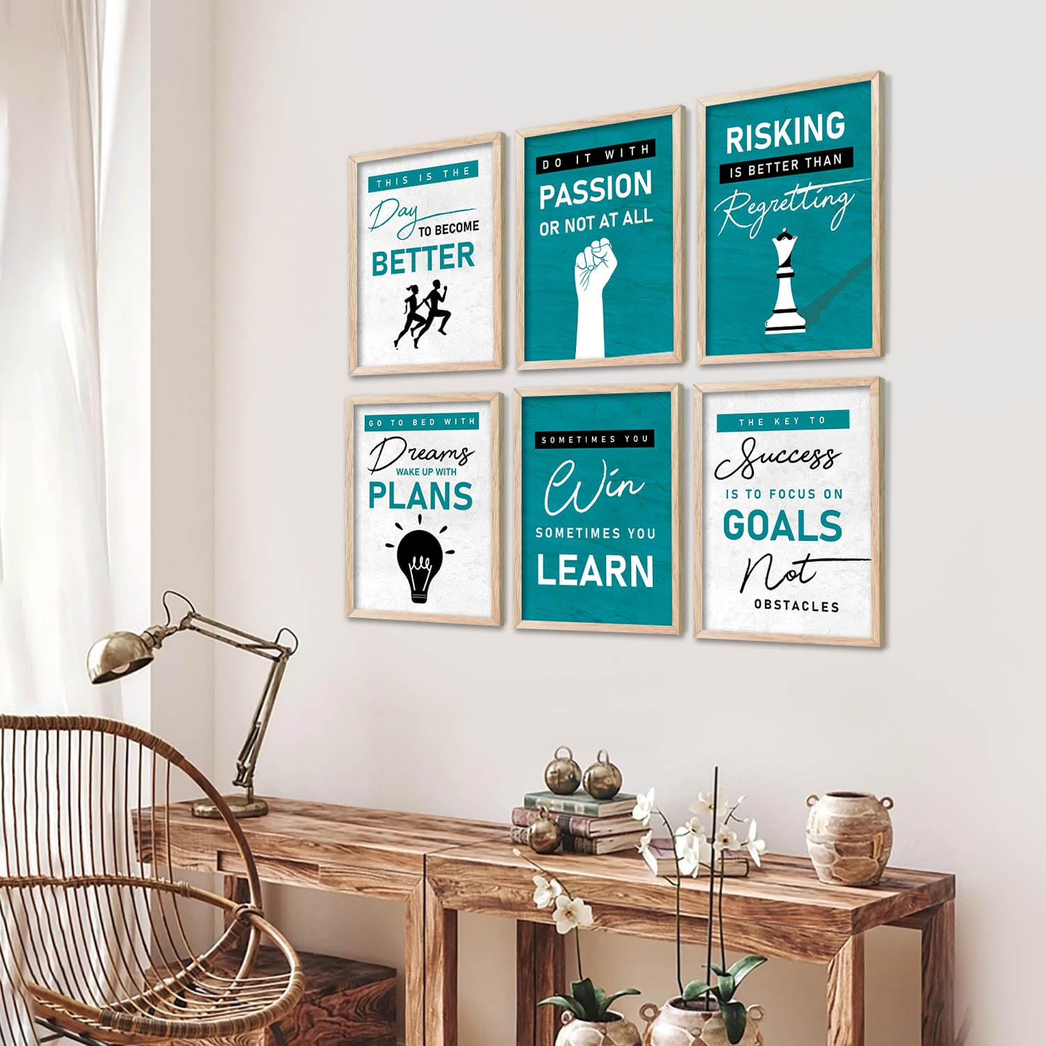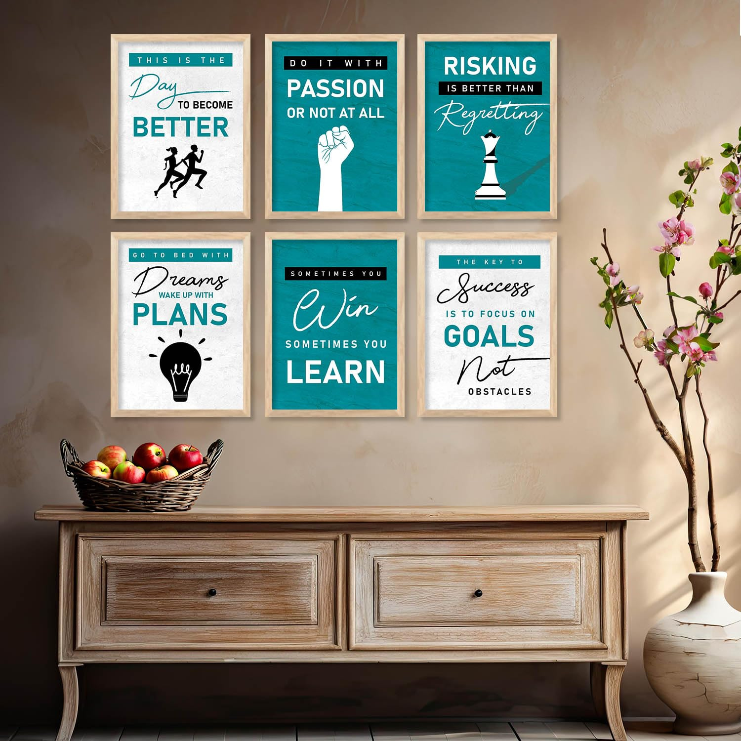 KRAYOG Motivational Wall Posters with Frames – Wall Hanging Décor for Living Room & Bedroom, Set of 6 (10×13 inch, B)