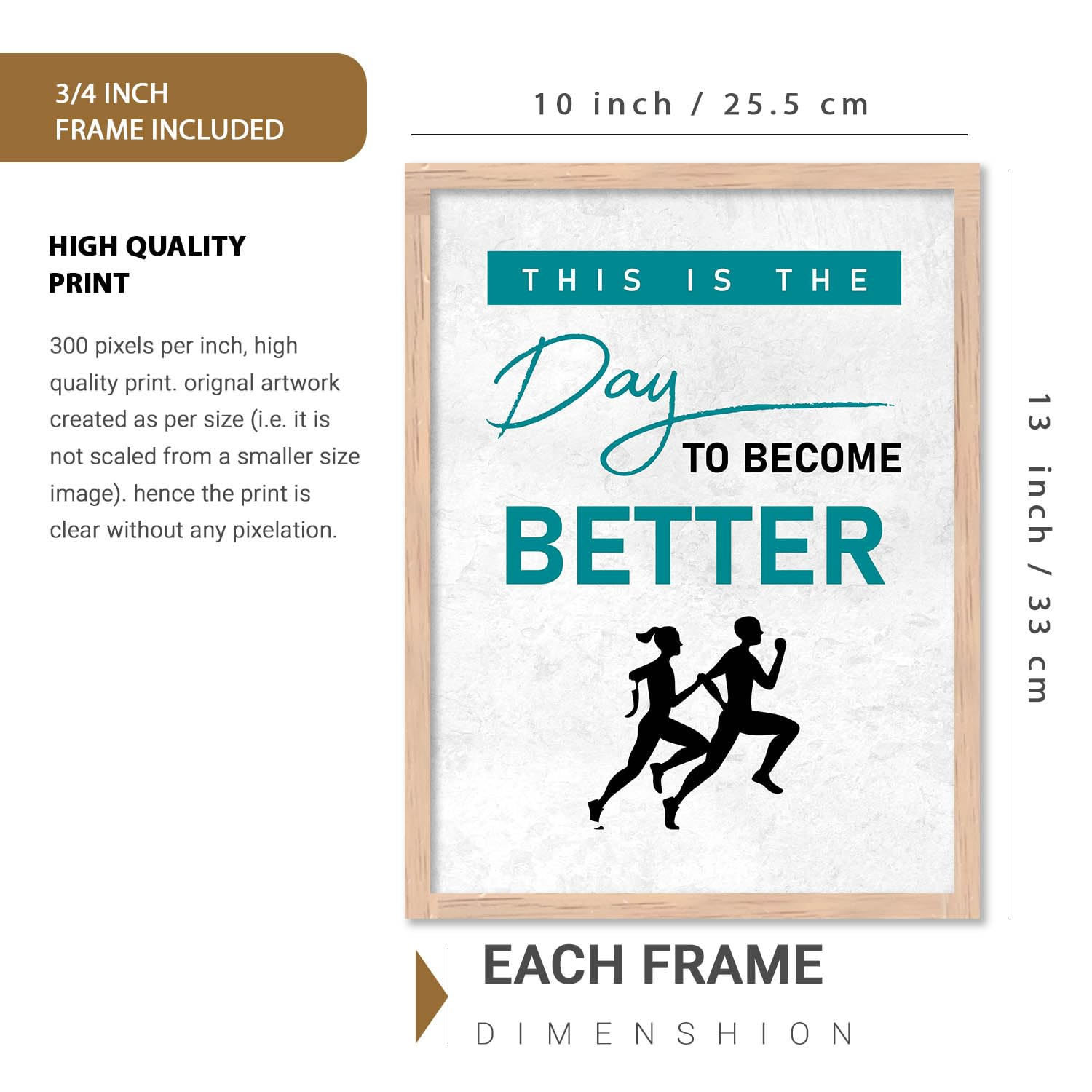 Inspire your space with this “This Is The Day To Become Better” motivational wall poster (10×13 inch). Printed in high-quality 300 DPI and framed with a sturdy 3/4 inch frame, this stylish wall décor is perfect for living rooms, bedrooms, offices, or gym areas. Its modern design and uplifting message add positivity and energy to any environment.