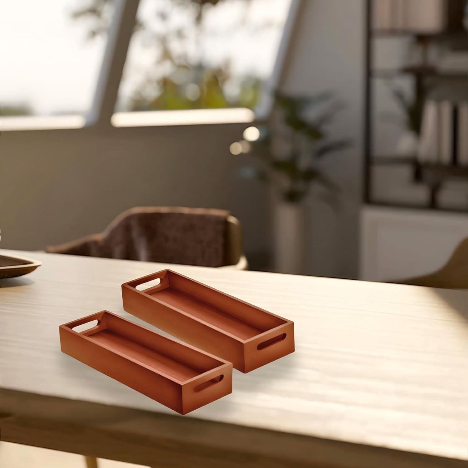 Bring elegance and functionality to your home with this Wooden Serving Tray Set of 2 in a natural finish. Ideal for serving breakfast, tea, snacks, and beverages, these multipurpose trays also work beautifully as storage organizers or decorative accents for your kitchen and dining table. Crafted for durability and everyday use, they combine style with practicality.