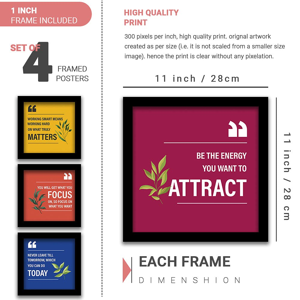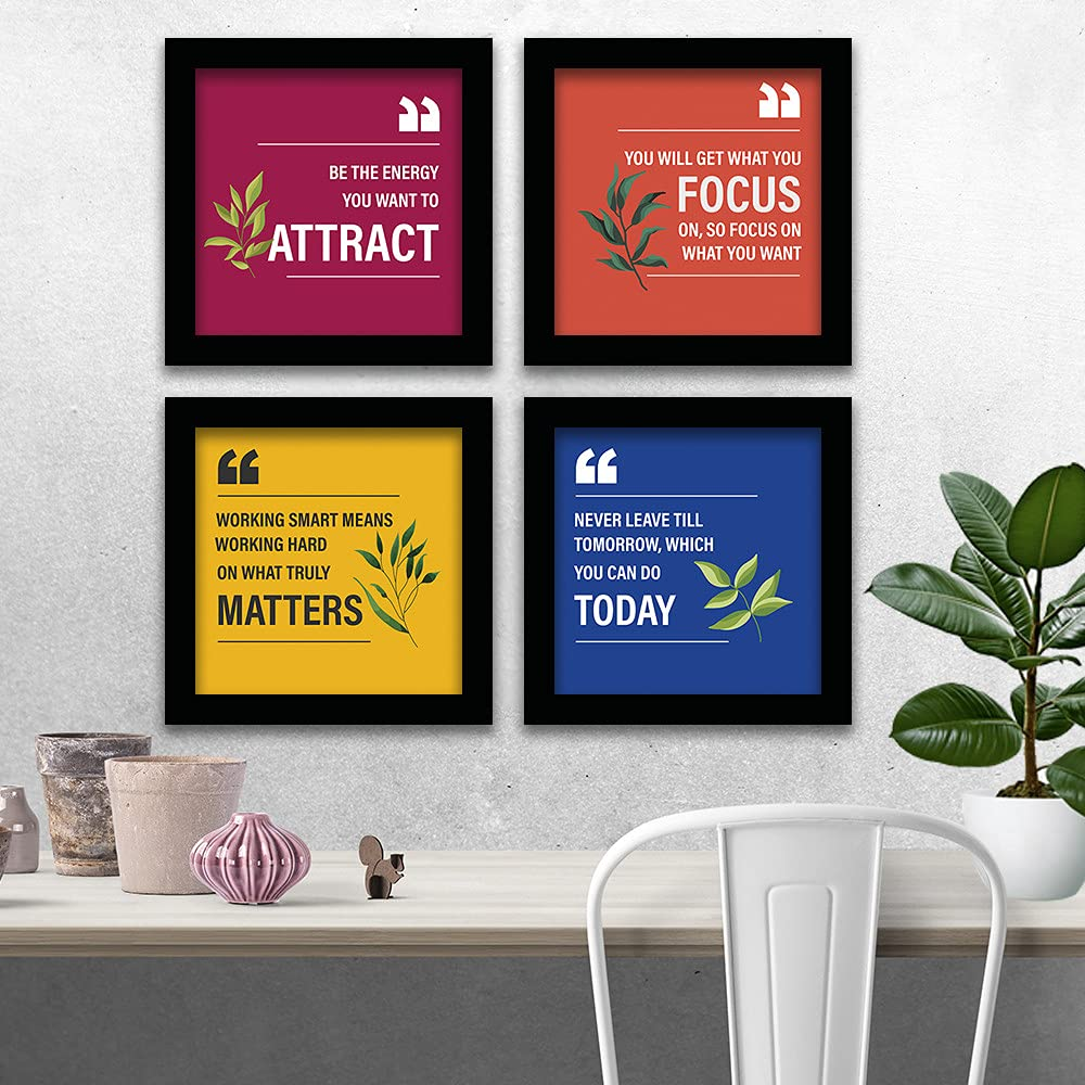 KRAYOG Nature Theme Motivational Quotes Framed Wall Paintings, Synthetic Wood, 11″ x 14″ – Set of 4