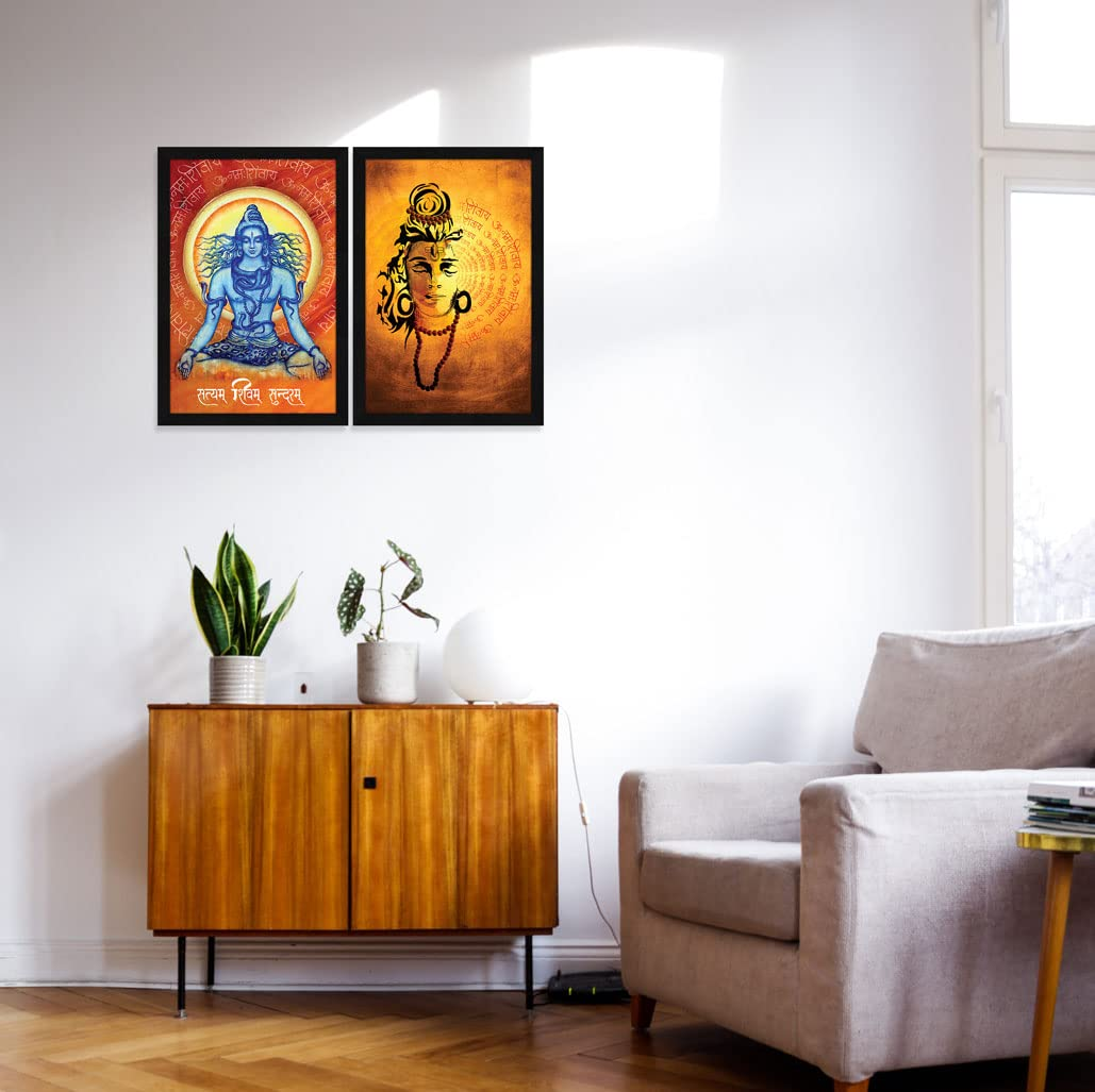 KRAYOG Powerful “Om Namah Shivaya” Shiv Mantra Framed Wall Art | Multicolor Religious Paintings | Set of 2 (12 x 18.05 Inches Each)