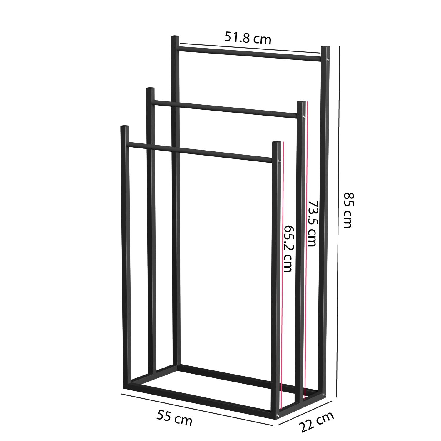 A sleek and sturdy metal stand designed for smart organization. With a compact 22 × 55 × 85 cm design, it features three strong bars to neatly hang clothes, towels, or accessories. Durable, space-saving, and easy to assemble, its modern look blends seamlessly with both contemporary and classic interiors—perfect for bedrooms, bathrooms, or living spaces.