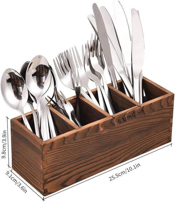• VERSATILE DESIGN: Multipurpose wooden caddy suitable for storing kitchen utensils, cutlery, flatware, or other household items with convenient carry handle