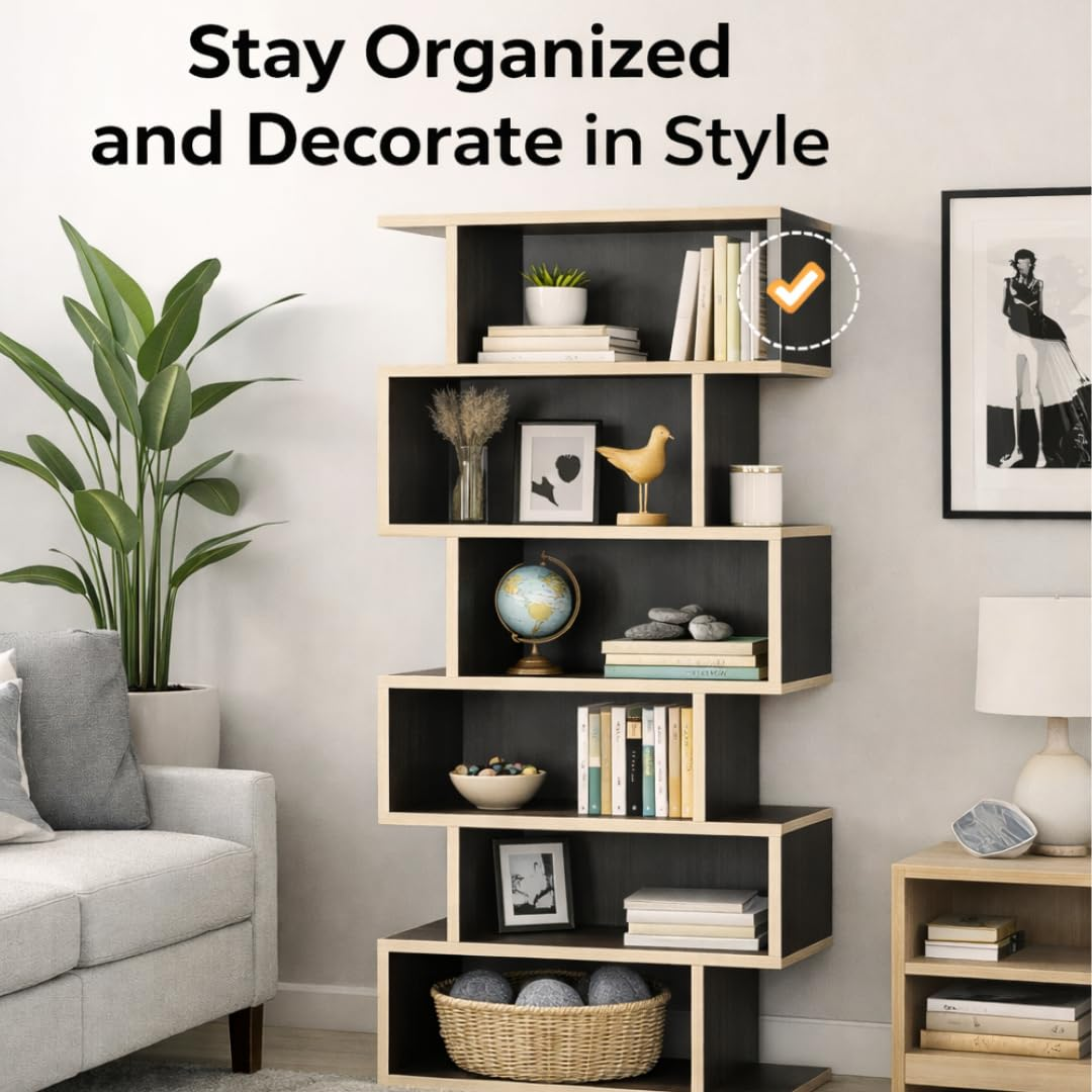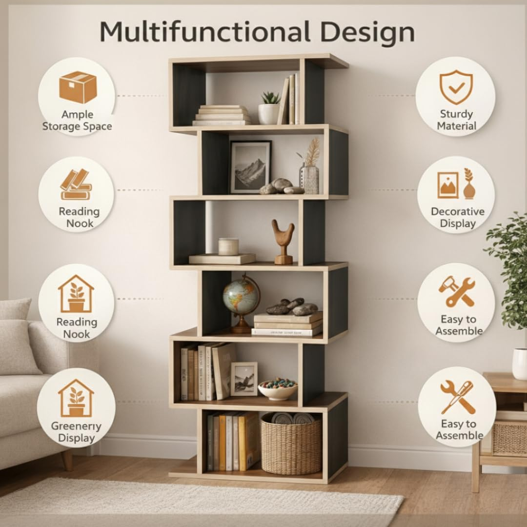 - 6 Tiers for Ample Storage: Provides space for books, décor items, photo frames, plants, and collectibles.