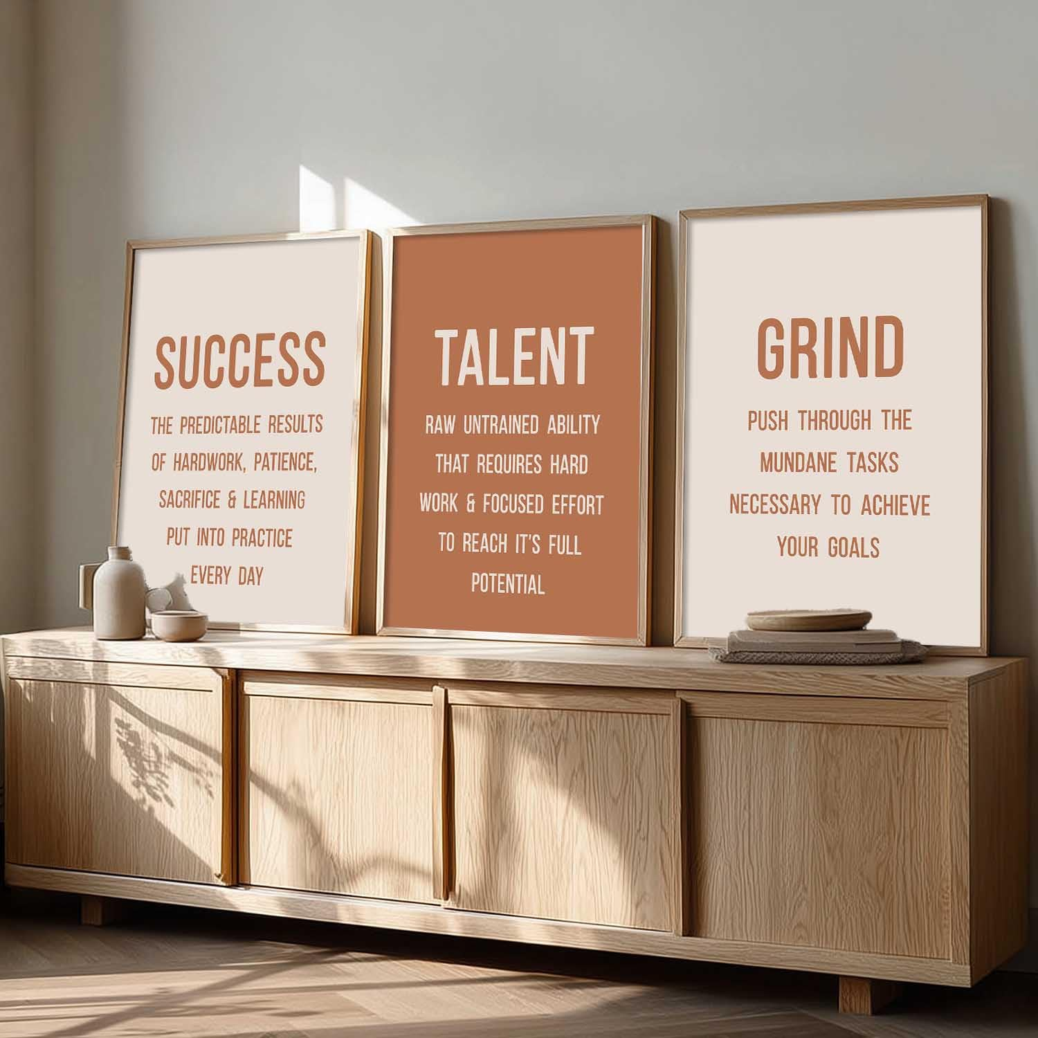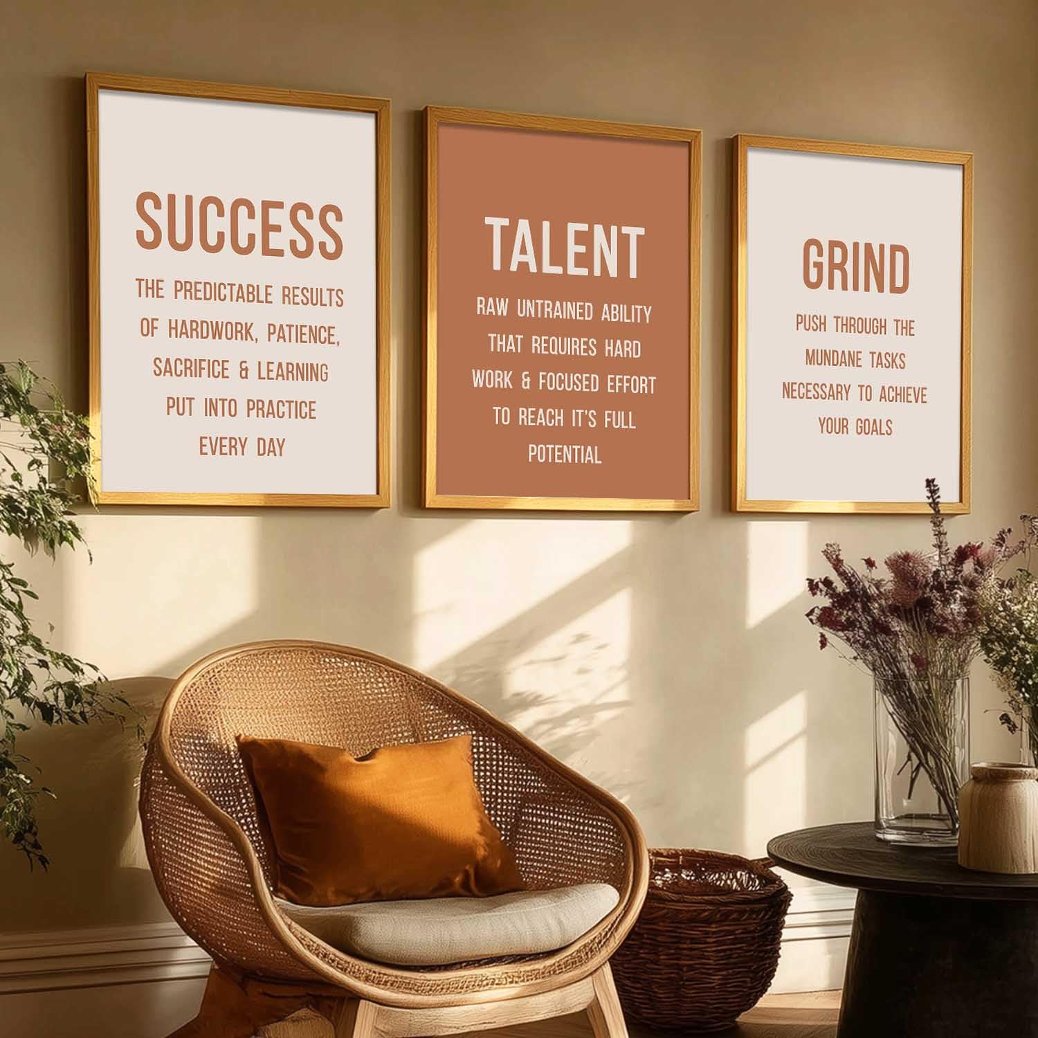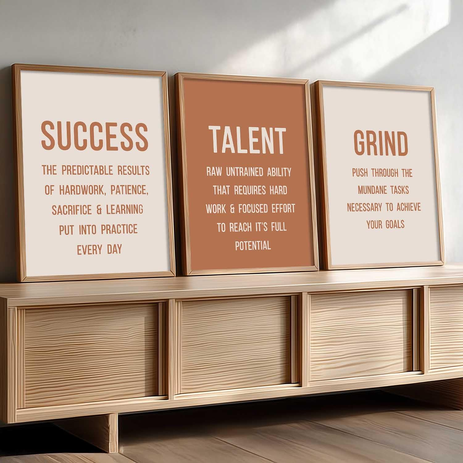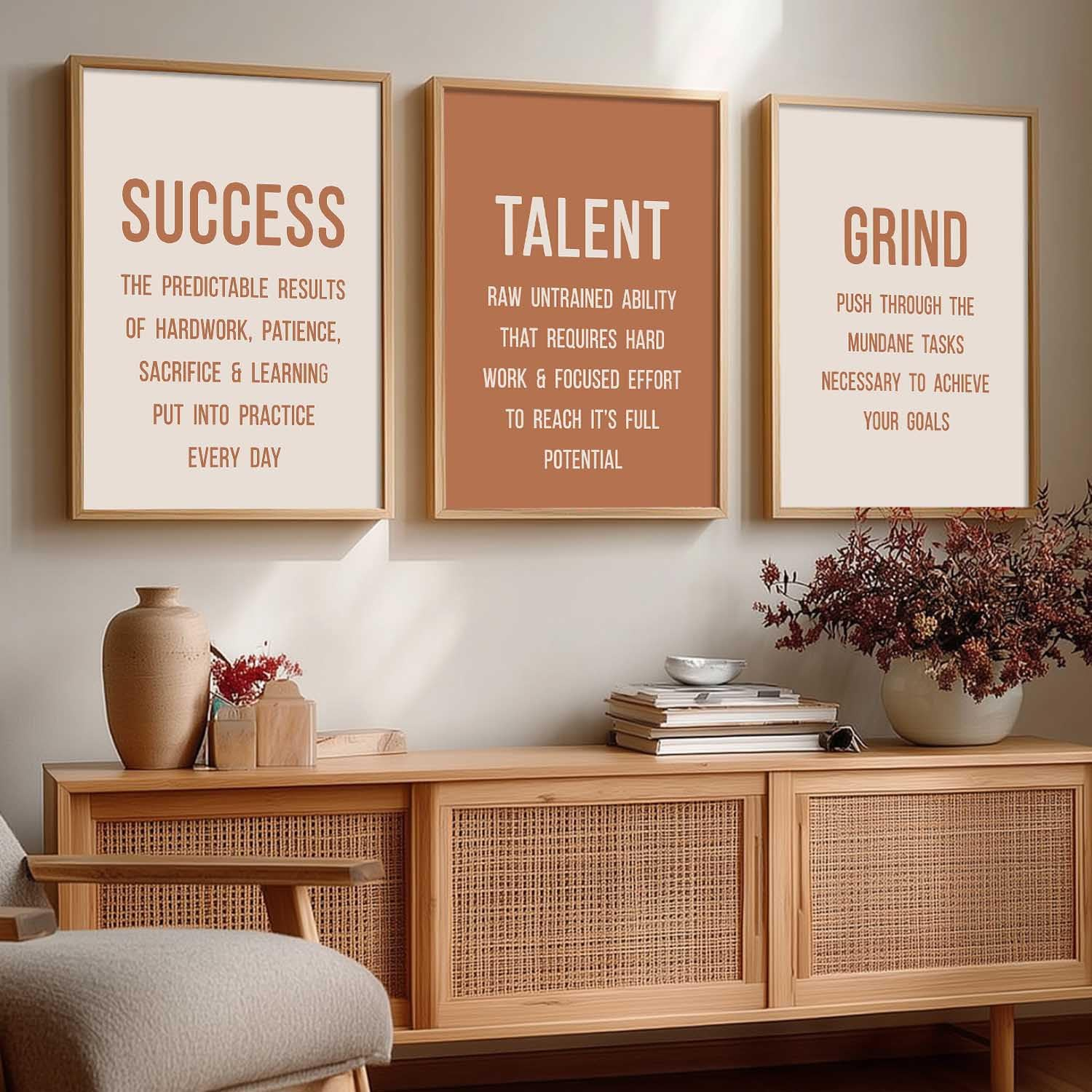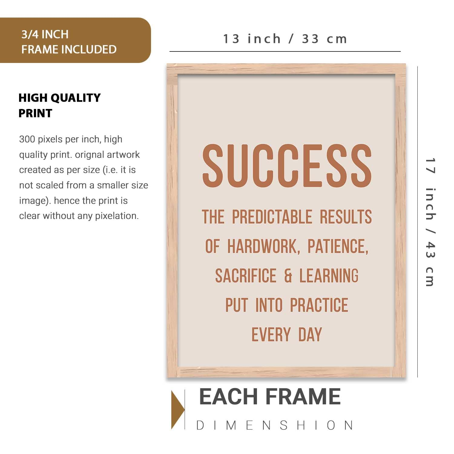 Enhance your space with this set of 3 motivational framed wall art posters (13×17 inch). Crafted with durable engineered wood frames, perfect for living room, bedroom, or office décor