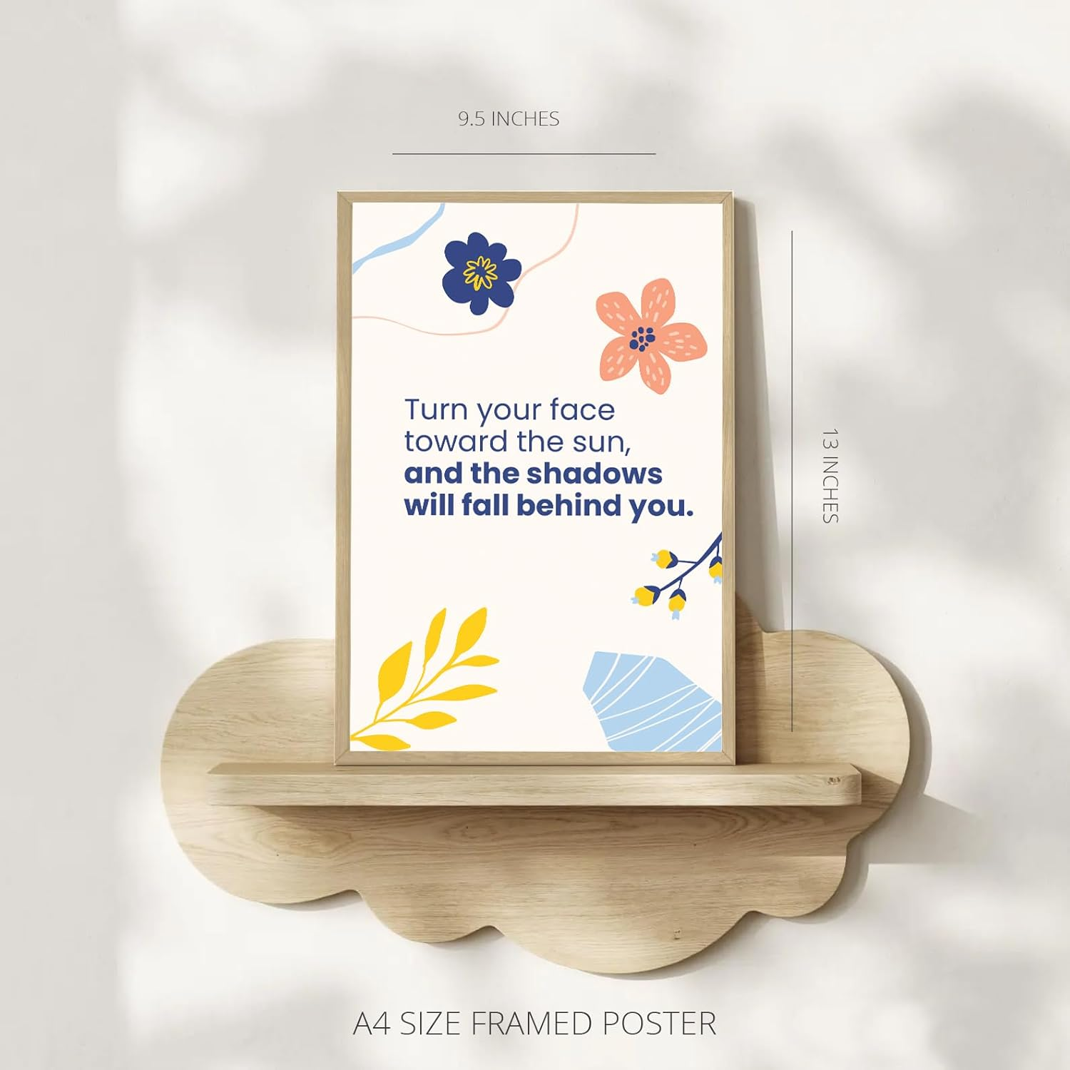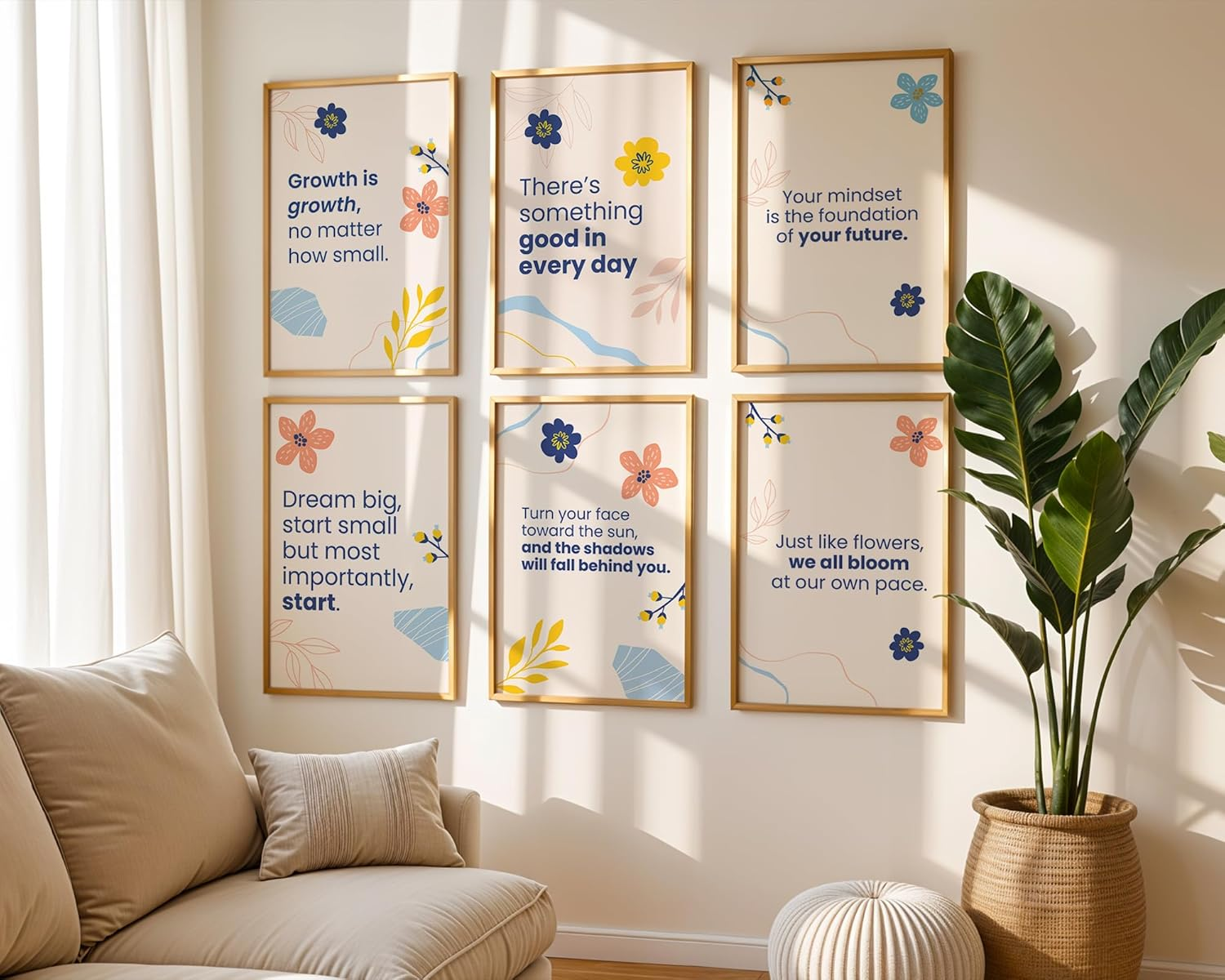 Set of 6 motivational quote posters with sturdy frames, designed to inspire your office, living room, or bedroom. A4 size (10×13 inches), ready to hang and perfect for home décor or gifting.