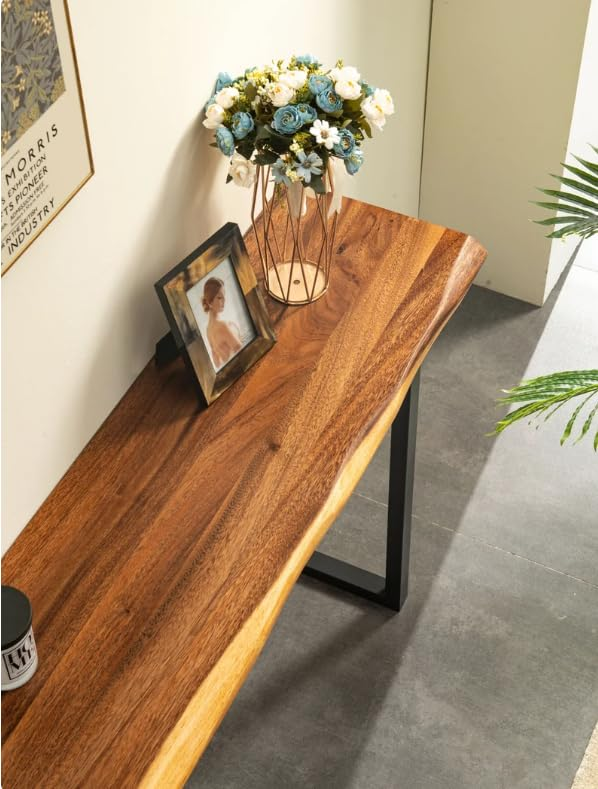 Add warmth and modern elegance to your interiors with this Sheesham wood console table in a natural teak finish. Supported by a sturdy black coated iron metal frame, it offers excellent durability and stability. Perfect for living rooms, entryways, hallways, foyers, or office spaces, its sleek and space-saving design makes it ideal for displaying décor, photo frames, plants, or everyday essentials.