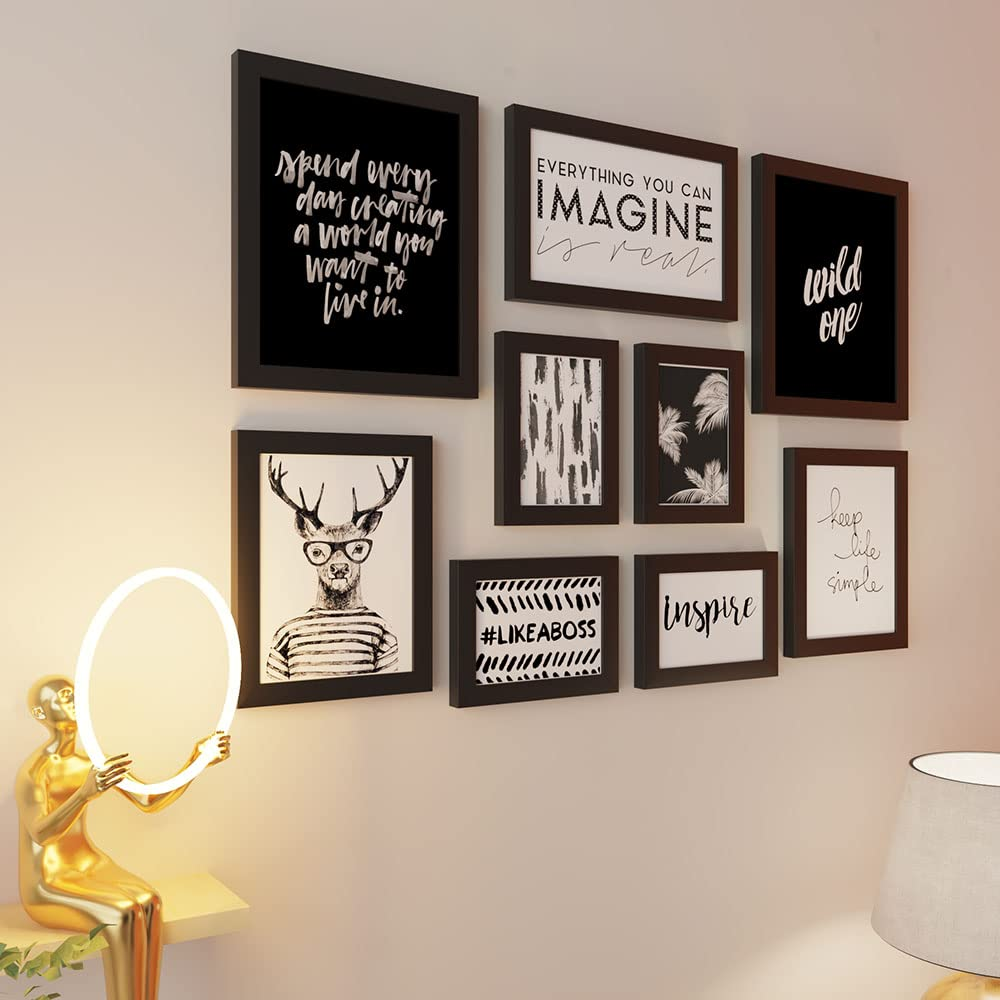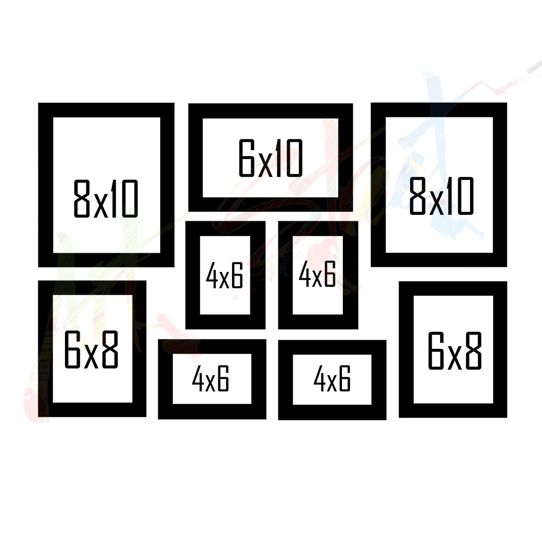• Package contents: 9 photo frames with Art Prints Photo Size : 8×10- 2unit , 6×10 -1 unit, 6×8 – 2 units , 4×6 – 4 Units.