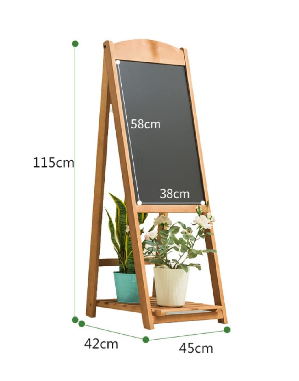 Crafted from premium teak wood, this free-standing chalkboard easel features a sturdy sidewalk sandwich board design with an integrated plant stand for added charm. Ideal for weddings, cafés, restaurants, events, and outdoor promotions, it offers a stylish and durable way to display menus, messages, and announcements.