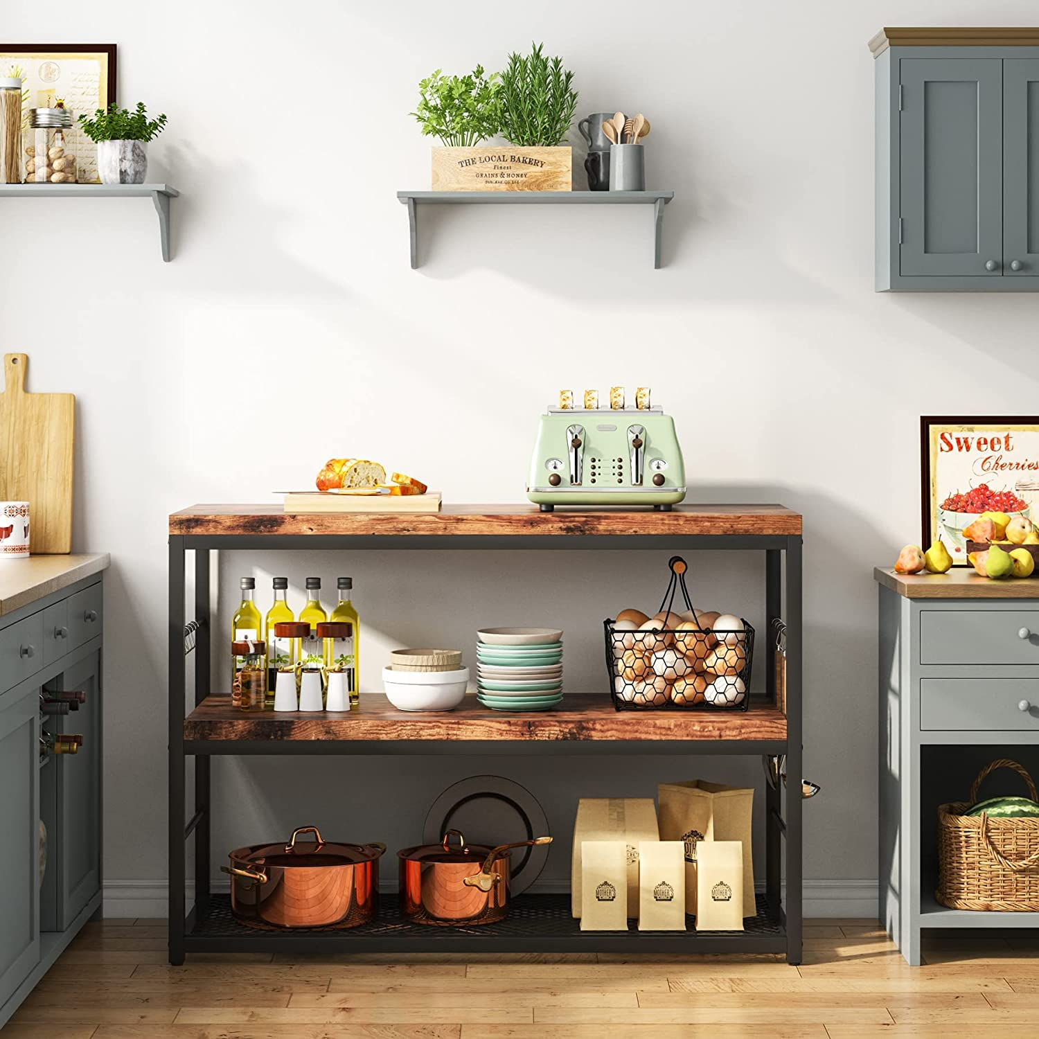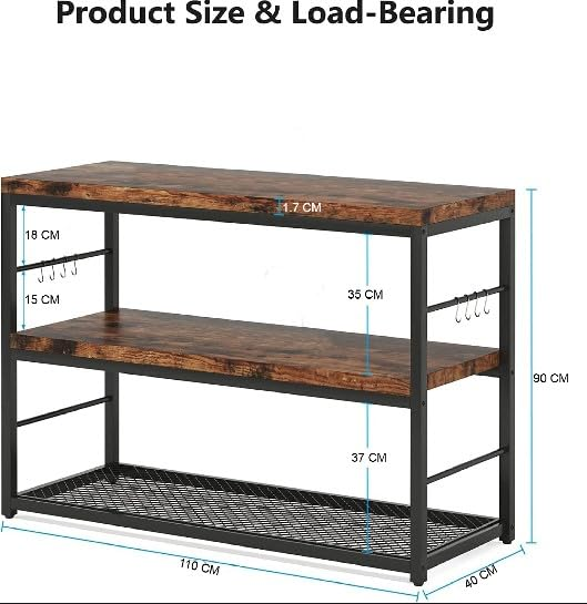 Tolvin Bakers Rack is a heavy-duty microwave oven stand designed to keep your kitchen organized and clutter-free. Featuring a sturdy multi-layer structure with convenient side hooks, it offers ample space for your oven, cookware, and essentials. Built for durability with a compact 110 x 40 x 90 cm design, this DIY assembly rack comes with a 1-year warranty for added peace of mind.