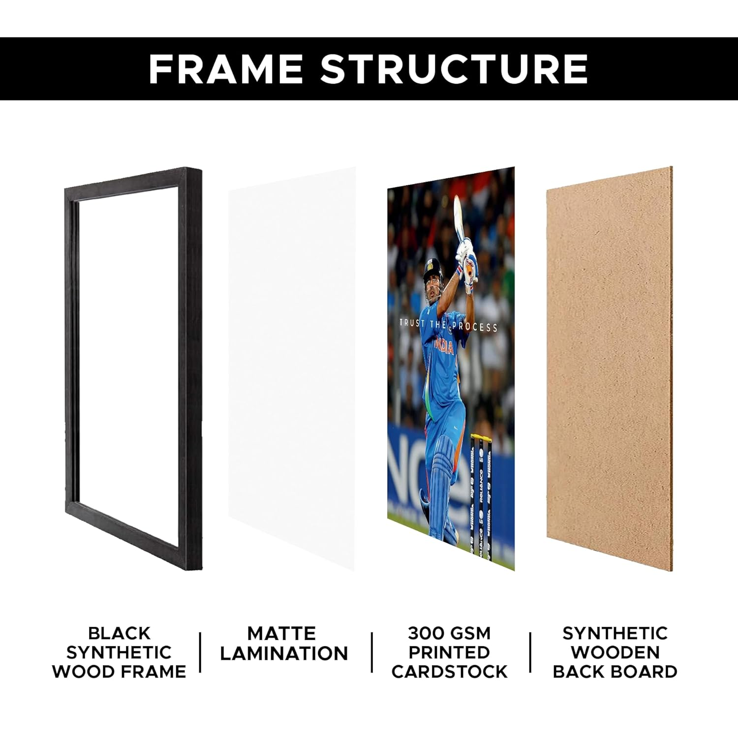 - ✔️ Premium A4 Motivational Cricket Poster – Features an action-packed cricket moment with the quote “Trust The Process,” professionally framed and ready to hang in bedrooms, offices, gaming setups, home gyms, and study areas.