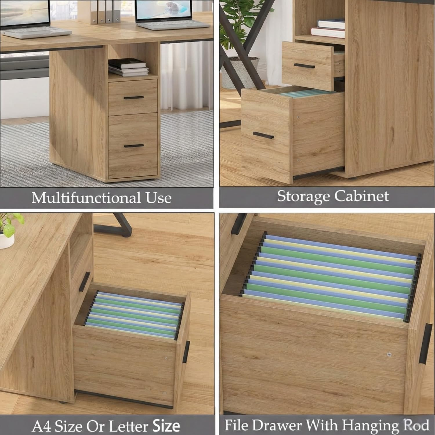 “240×60×75 cm brown wood two-person desk with DIY assembly, 2 drawers, and 1 shelf—ideal for home or office computer workstations.”