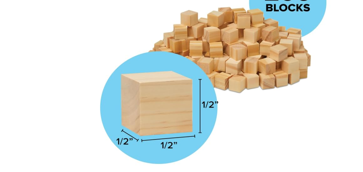 KRAYOG Unfinished 1/2 Inch Wooden Block Cubes – 250 Solid Wood Square Blocks for DIY Crafts, Art Projects & Creative Use