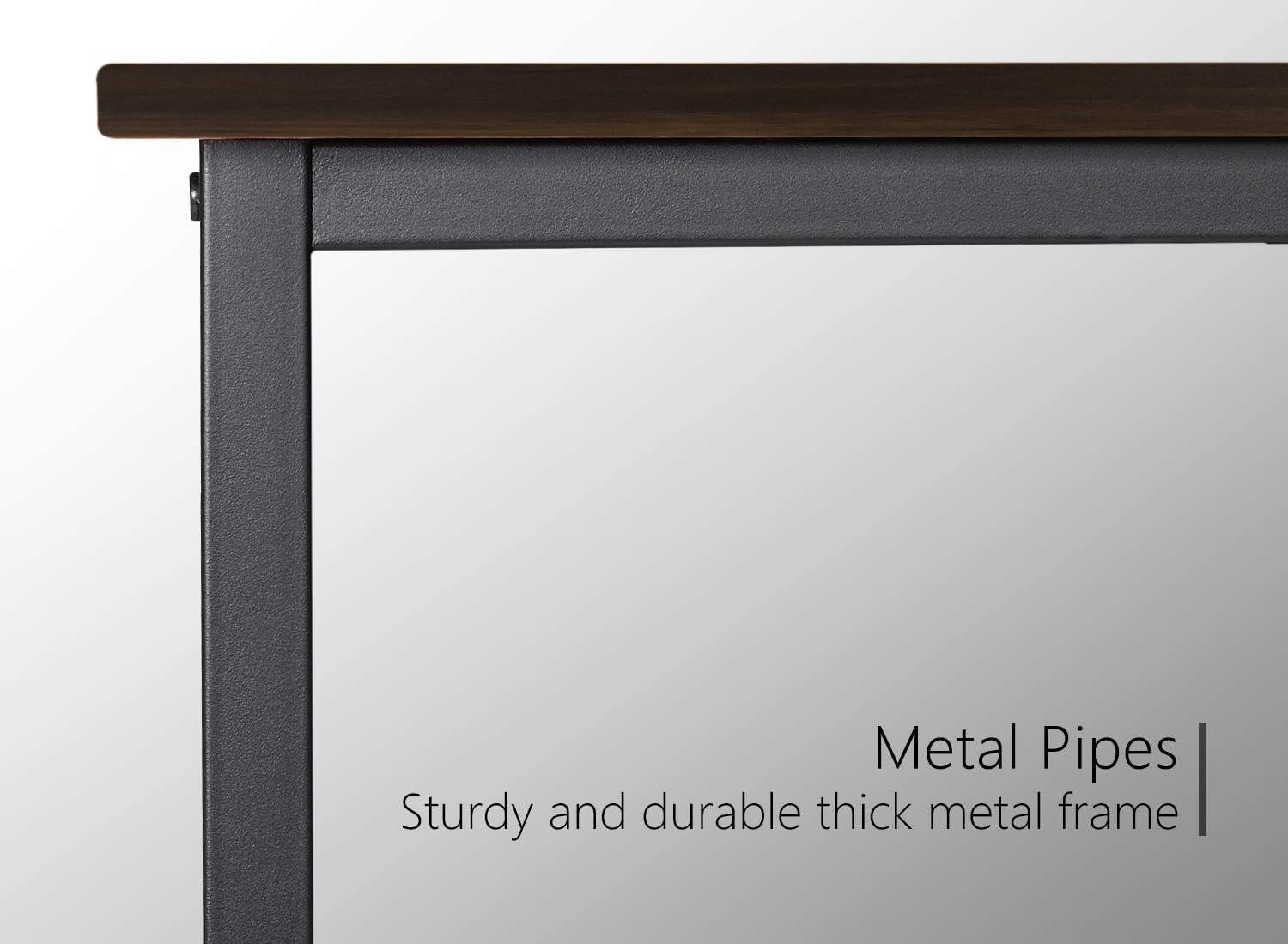 Equipped with a high-quality pre-laminated solid wood top, a reinforced steel structure, and adjustable feet, this computer desk remains perfectly balanced on any surface without wobbling.