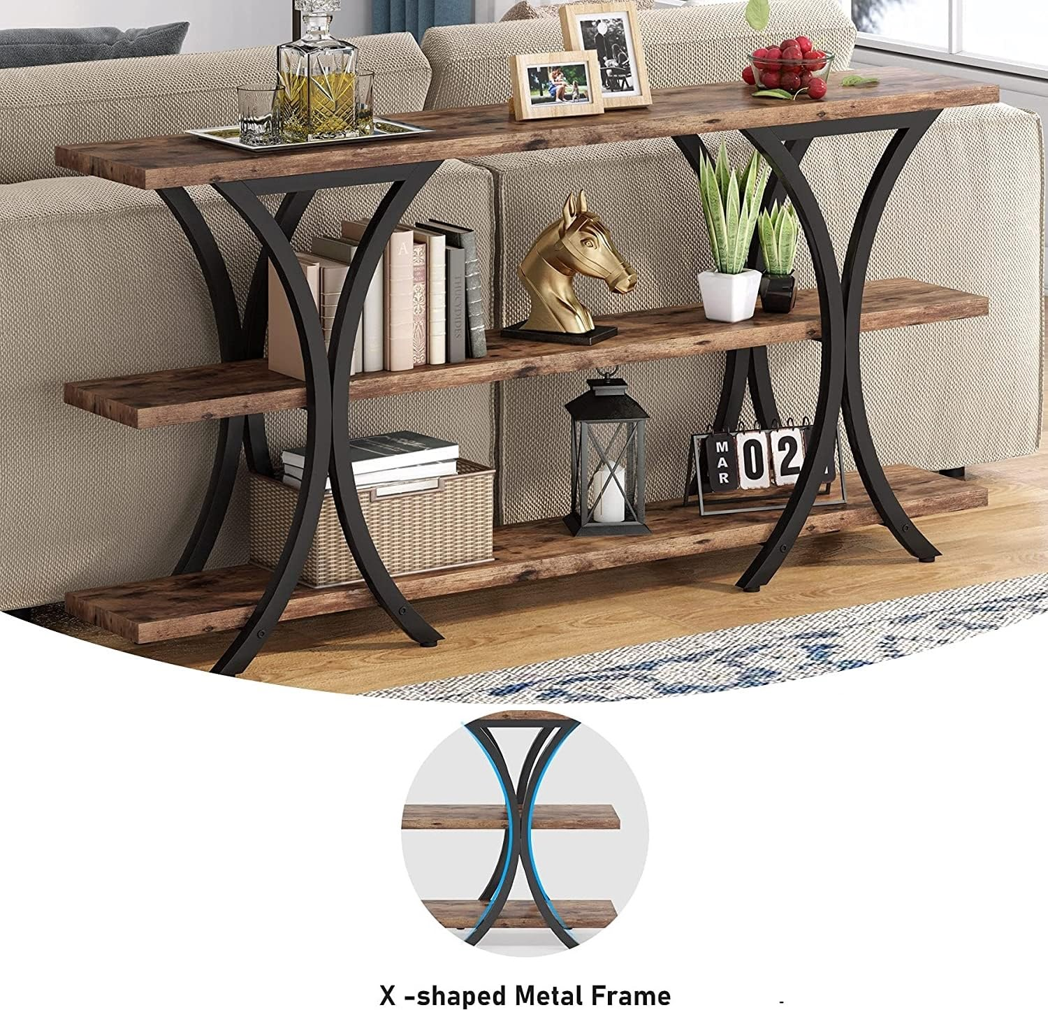 KRAYOG **Wood Console Table for Living Room – 180 CM Entryway Table, 3-Tier Long Narrow Hallway Design (Brown, DIY Assembly)**