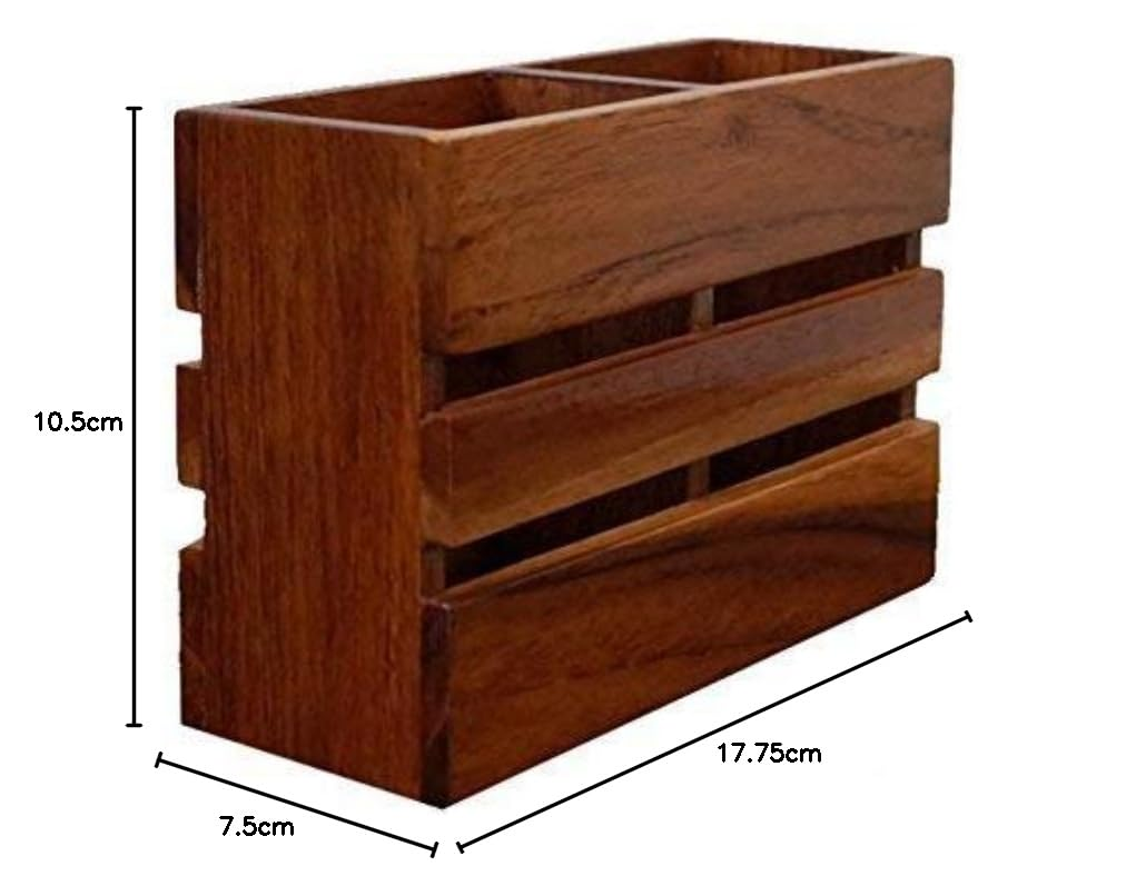 - Handcrafted wooden spoon stand doubles as a wooden cutlery holder, keeping spoons, forks, knives, and karandi organised neatly on the counter or dining table surface.
