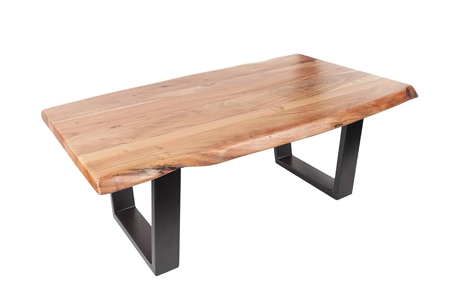 - Showcases the natural, organic shape of the acacia wood for a unique and rustic look.Features strong and durable iron legs that provide stable support and contrast the organic wood top.