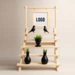 Custom Pinewood Staircase Display Stand – 3-Tier Organizer with Branding Frame & 3 Bars