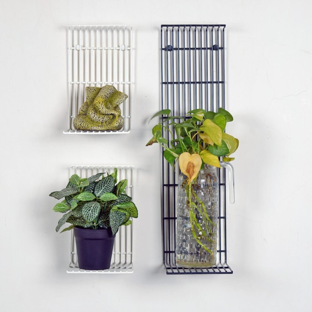White Grellis Grid Wall Mounted Plant stand (Set of 4)