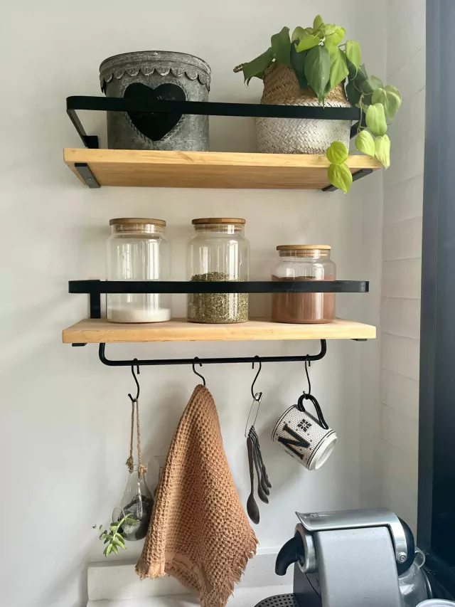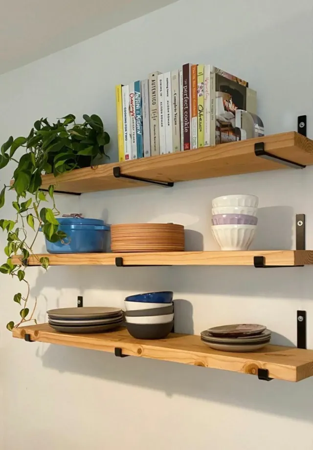 KRAYOG Industrial Pine Wood Wall Shelf – 30mm Thick Floating Shelf with Iron Brackets