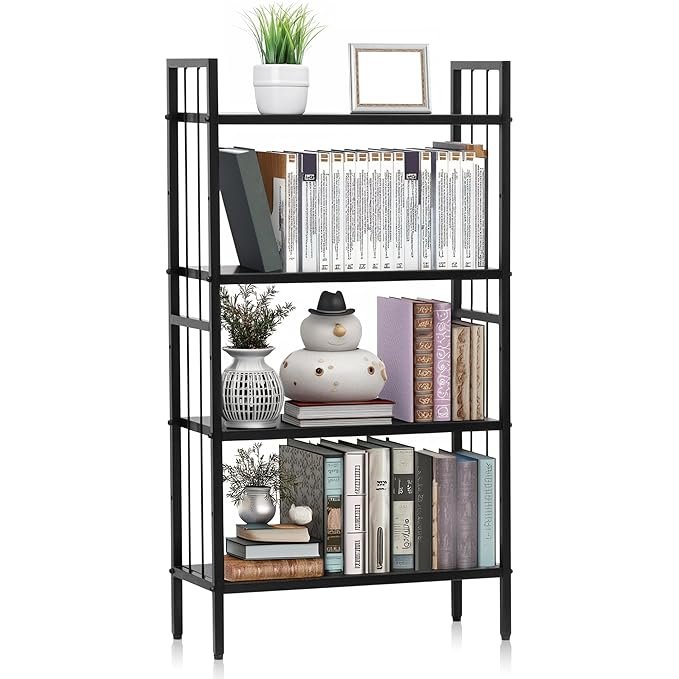 Krayog 4 Tier Height Adjustable Metal Bookshelf Metal Rack Wooden Almirah for Home Library Book Shelf Open Display Books Rack 4 Layer Book Shelf Bookcases DIY