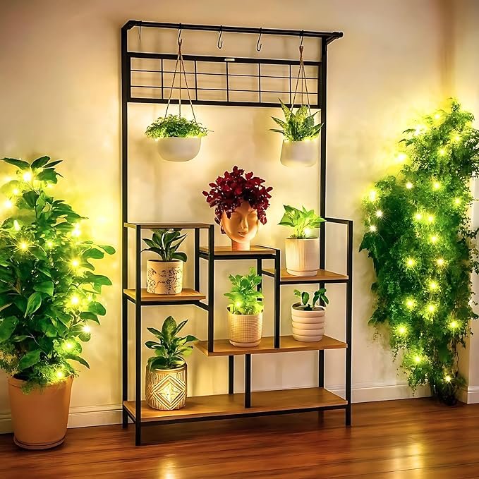 Plant Stands for Outdoor Balcony, Flower Pot Stand for Indoor Plants, Large Metal Planter Stand for Living Room, home decor, Indoor & Outdoor plants, 11 Tier, (Black)
