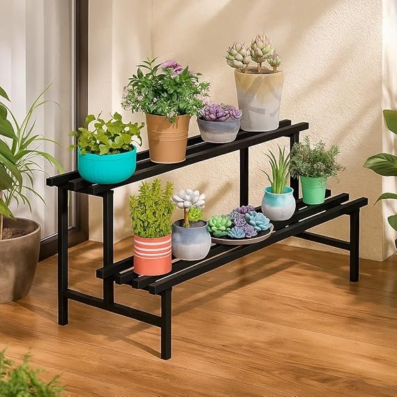 2-Tier Metal Plant Stand Stylish & Sturdy Iron Rack for Home, Balcony & Garden | Space-Saving, Durable & Ideal for Indoor & Outdoor Decor (Black)