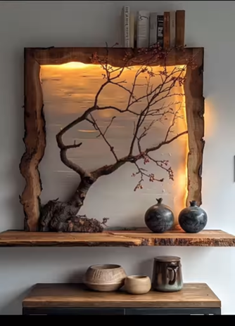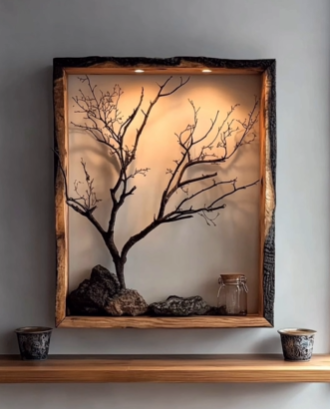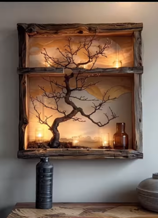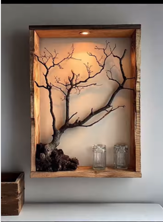 Edged Wood Shadow Box with Tree Branch Art and LED Backlight