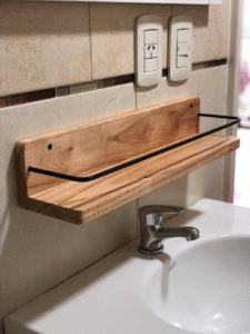 KRAYOG Wooden Wall Shelf Combo – “Serrano & Orense” Floating Shelves with Towel Bar, Pine Finish